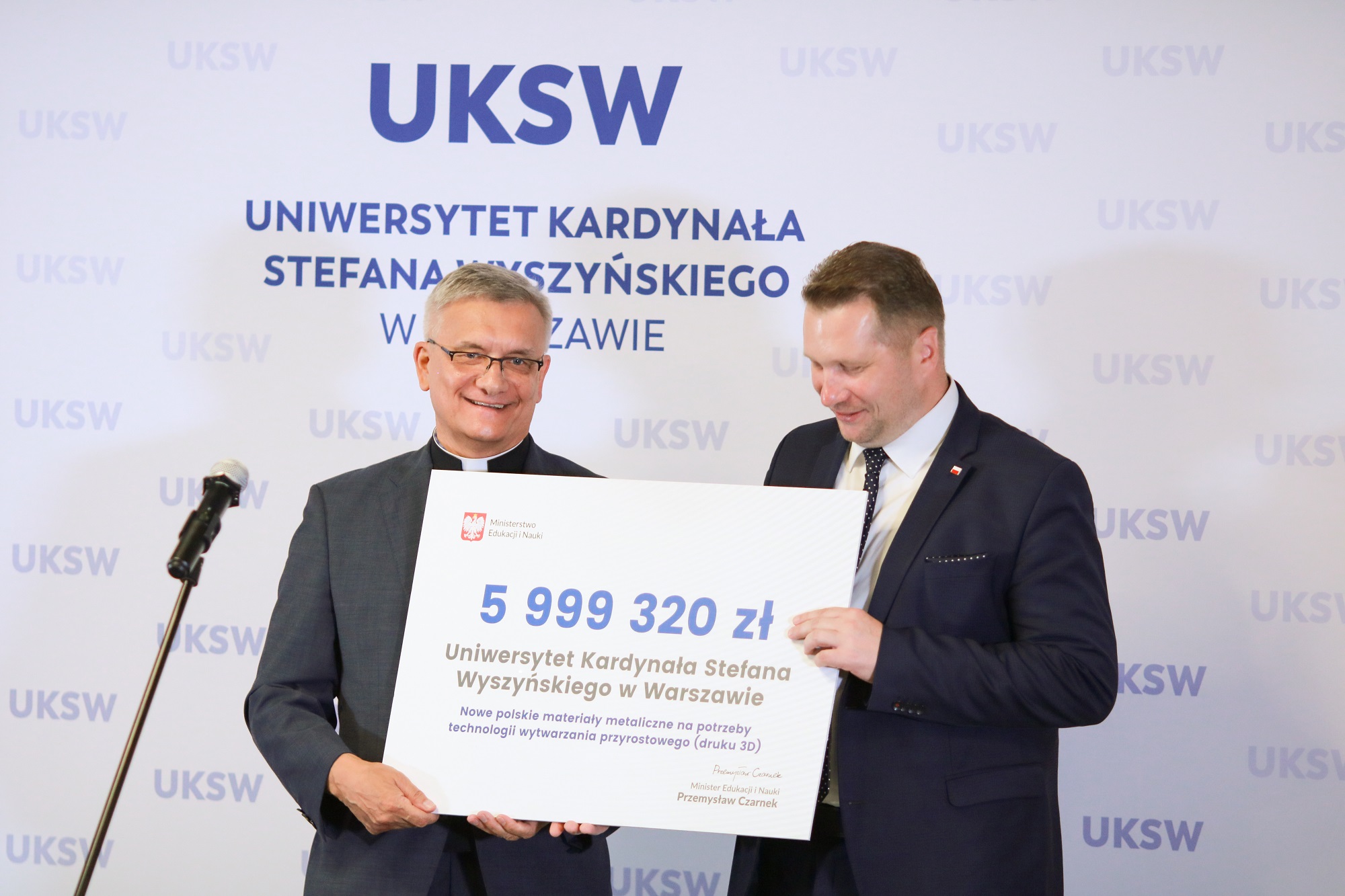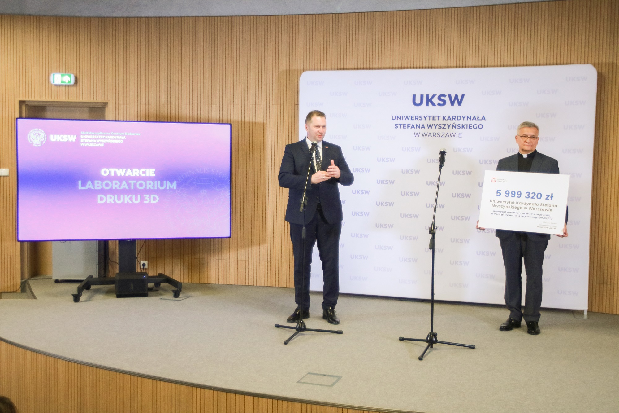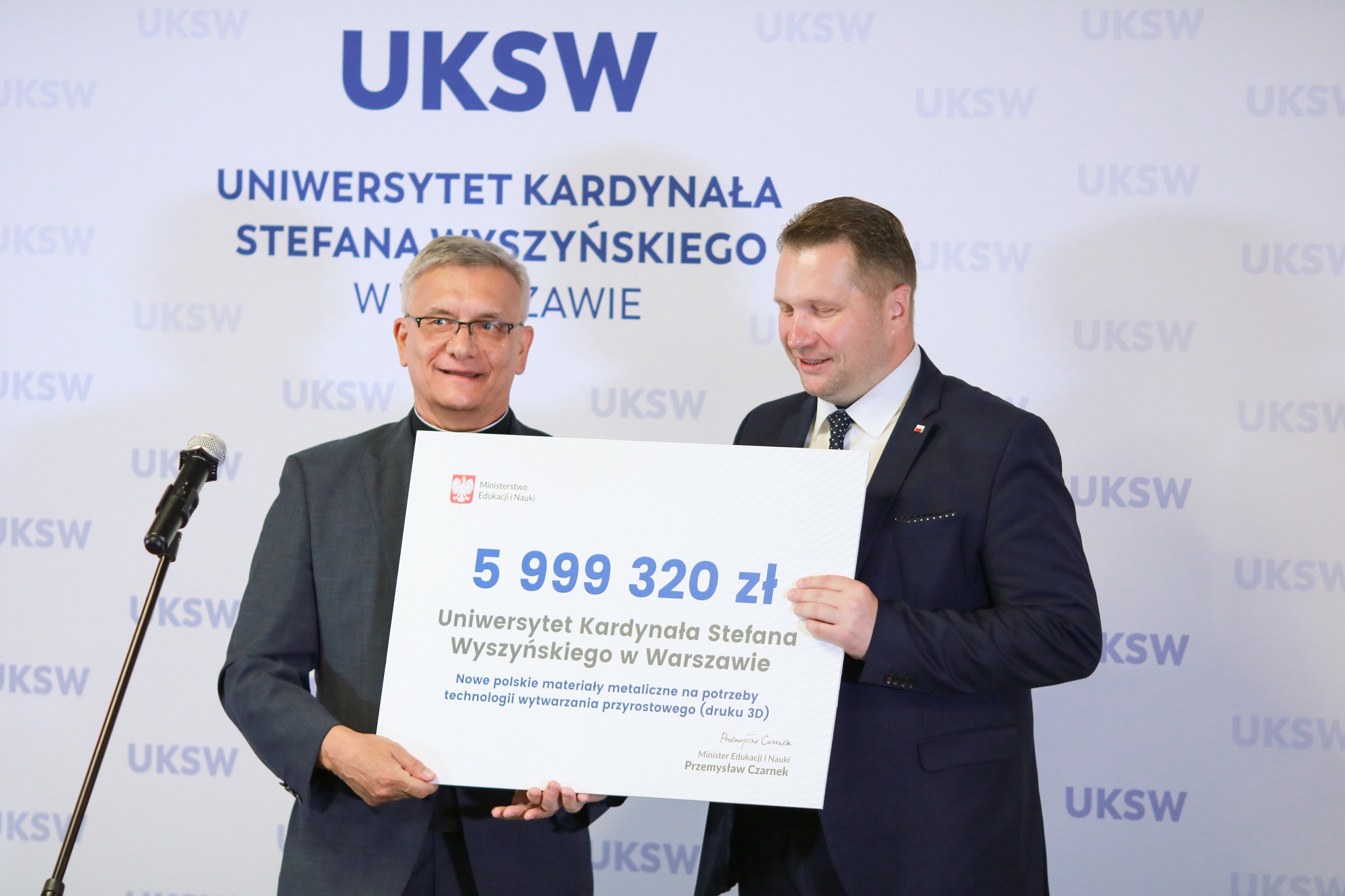 Szef MEiN zainaugurował działalność pierwszego w Polsce kompleksowego Laboratorium druku 3D, które będzie funkcjonowało w ramach Multidyscyplinarnego Centrum Badawczego UKSW. Władzom uczelni przekazał także czek na kwotę prawie 6 mln zł na materiały metaliczne na potrzeby technologii wytwarzania przyrostowego (druku 3D).