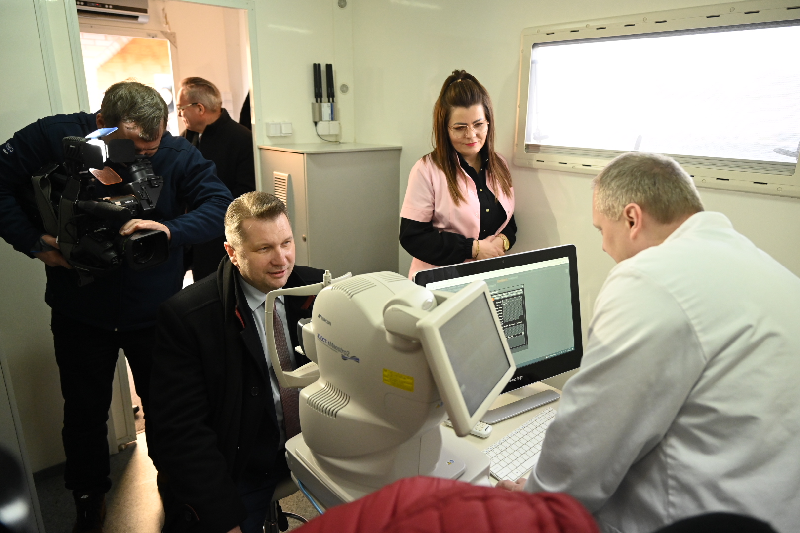 Minister Edukacji i Nauki Przemysław Czarnek uczestniczył w inauguracji mobilnego centrum diagnostyki okulistycznej. Okobus będzie wykorzystywany w pilotażowym programie badań przesiewowych dna oka osób chorych na cukrzycę. Wykonane w nim badania dotrą zdalnie do specjalistów z Kliniki Okulistyki Ogólnej w Lublinie, którzy przeanalizują je pod kątem objawów chorobowych.