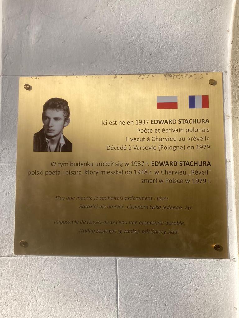 W Charvieu-Chavagneux odsłonięto tablicę poświęconą polskiemu poecie i pisarzowi Edwardowi Stachurze. To właśnie w tym miejscu urodził się autor „Siekierezady”. Stachura jest zaliczany do grona twórców „przeklętych” i „kaskaderów literatury”. Nazywano go „zbuntowanym trubadurem”, „polskim Włodzimierzem Wysockim”. Już za życia stał się legendą.