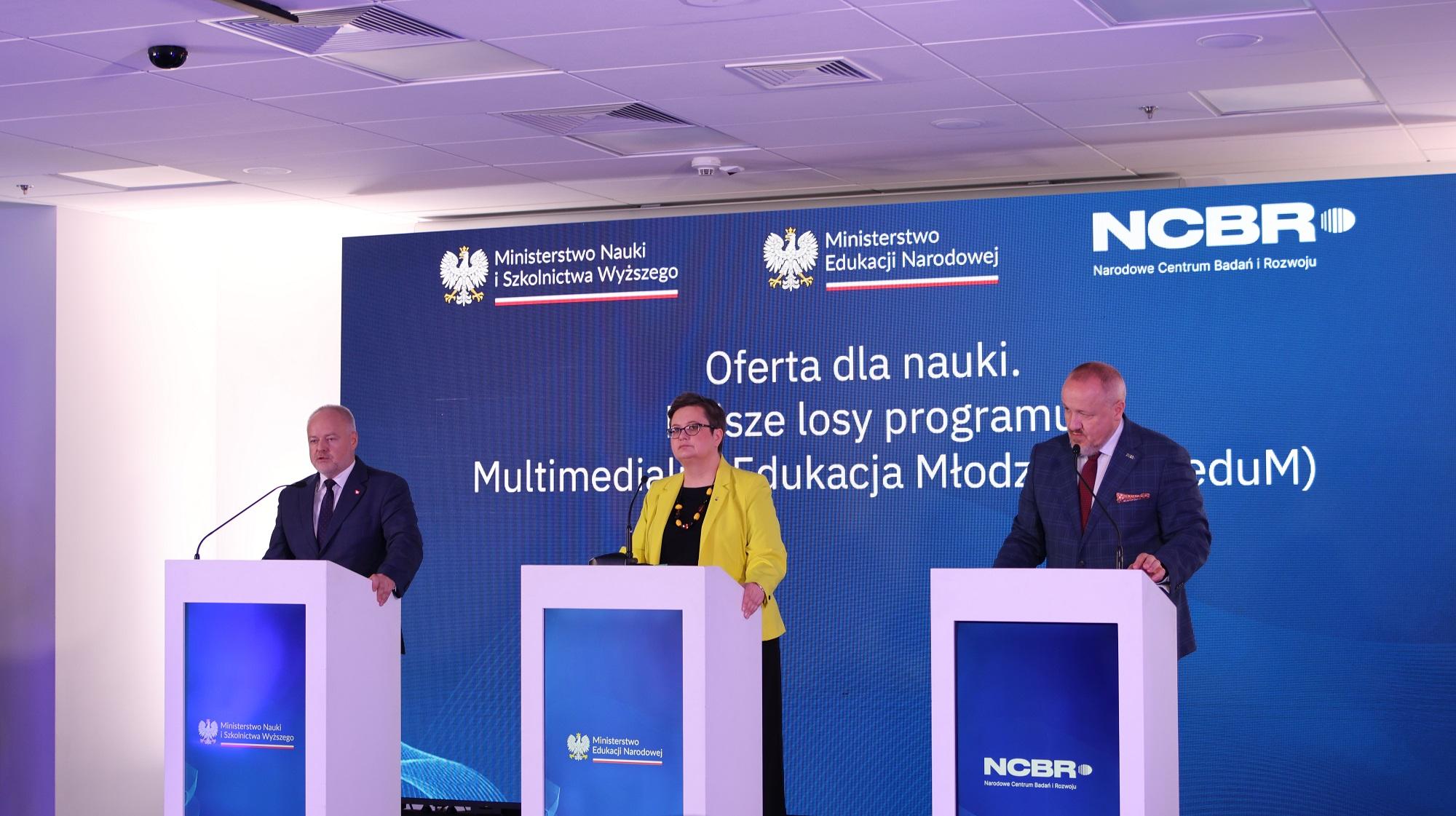 Na temat dalszych losów programu Multimedialna Edukacja Młodzieży podczas konferencji prasowej w Narodowym Centrum Badań i Rozwoju stanowisko zajęli: