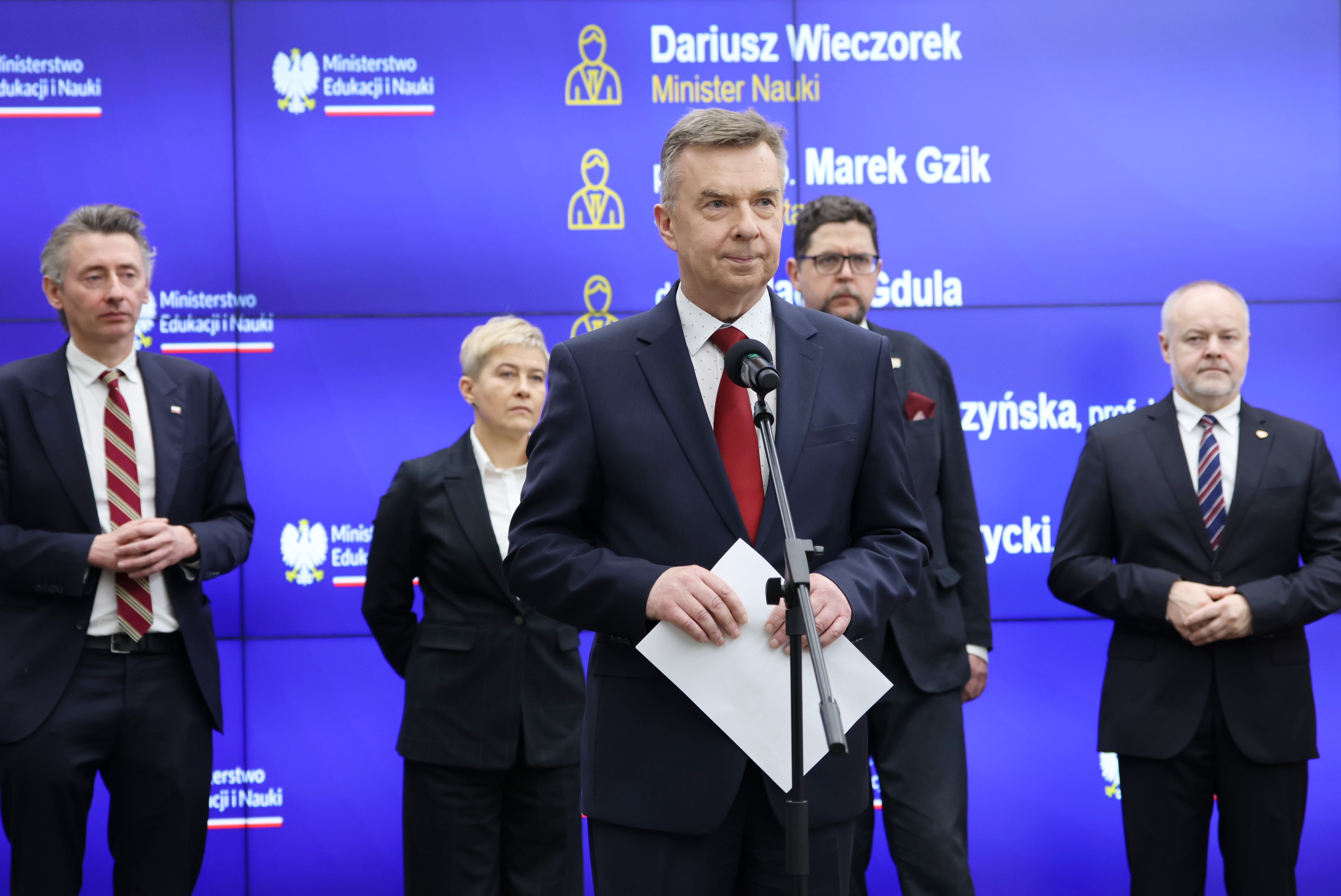 Minister Nauki Dariusz Wieczorek przedstawił nowych wiceministrów odpowiedzialnych za sprawy nauki i szkolnictwa wyższego. W kierownictwie resortu znaleźli się: prof. dr hab. inż. Marek Gzik, dr hab. Maciej Gdula, dr hab. Maria Mrówczyńska, prof. UZ oraz dr hab. Andrzej Szeptycki, prof. UW.