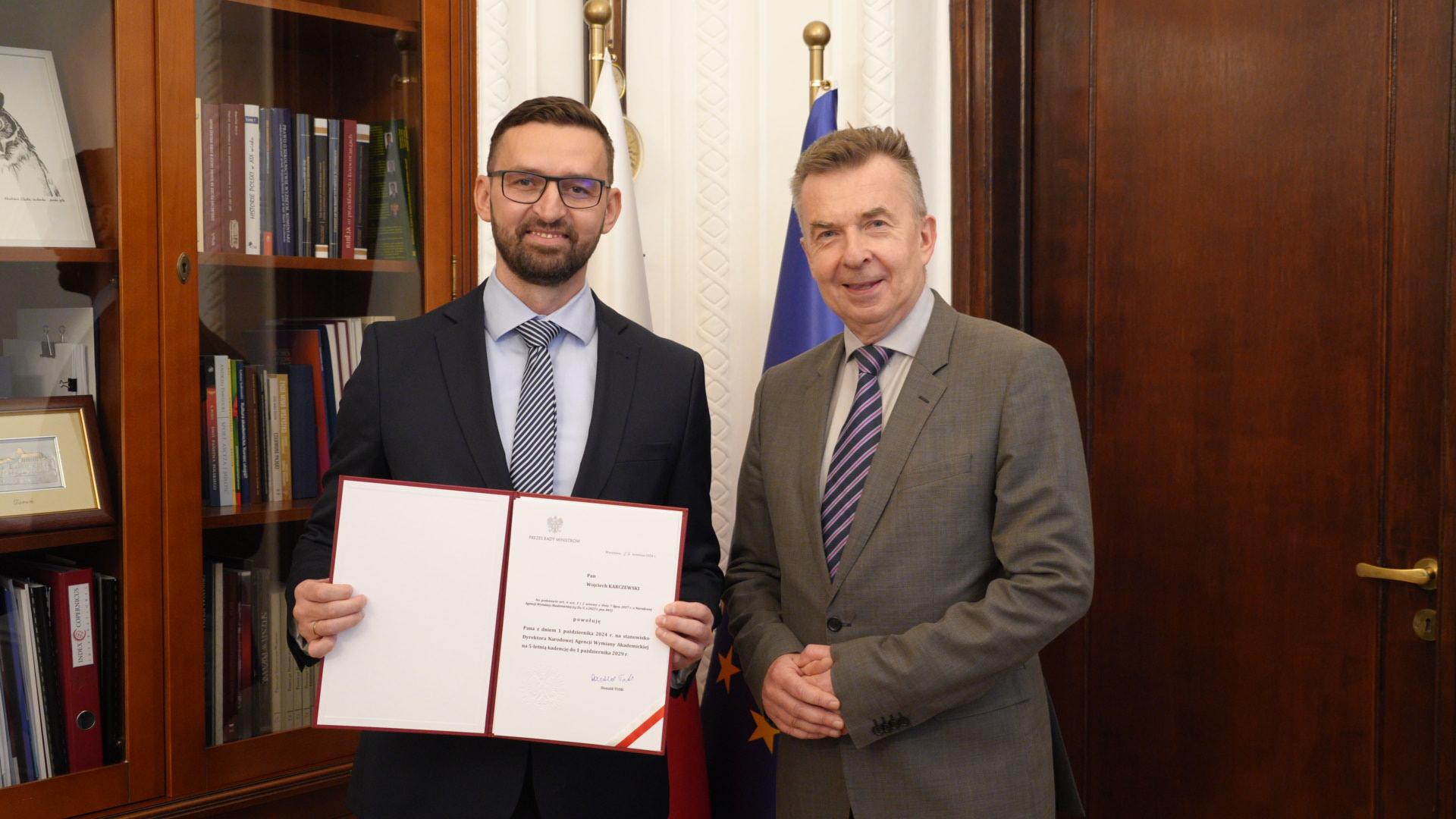 Minister nauki Dariusz Wieczorek wręczył powołanie nowemu dyrektorowi Narodowej Agencji Wymiany Akademickiej (NAWA). Od 1 października 2024 roku funkcję tę pełni dr Wojciech Karczewski.