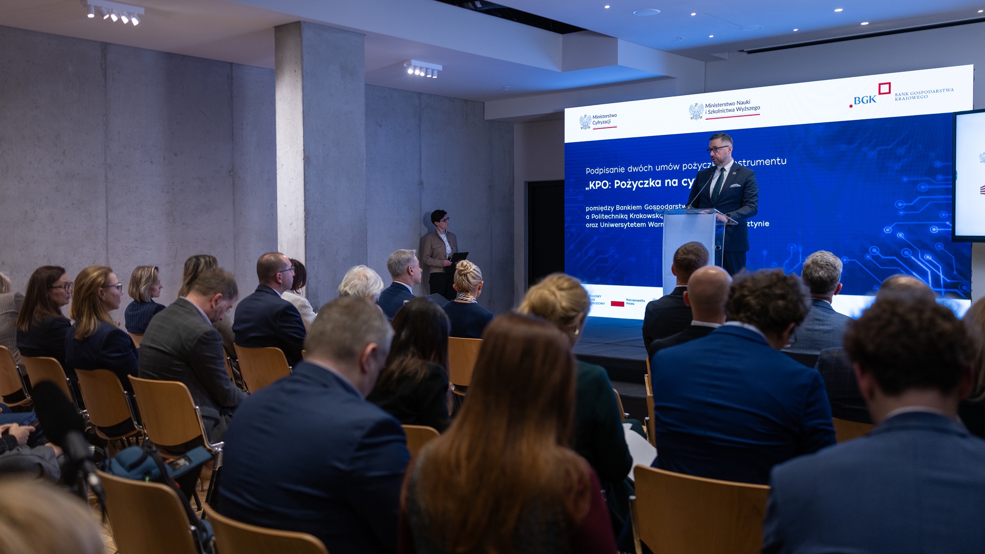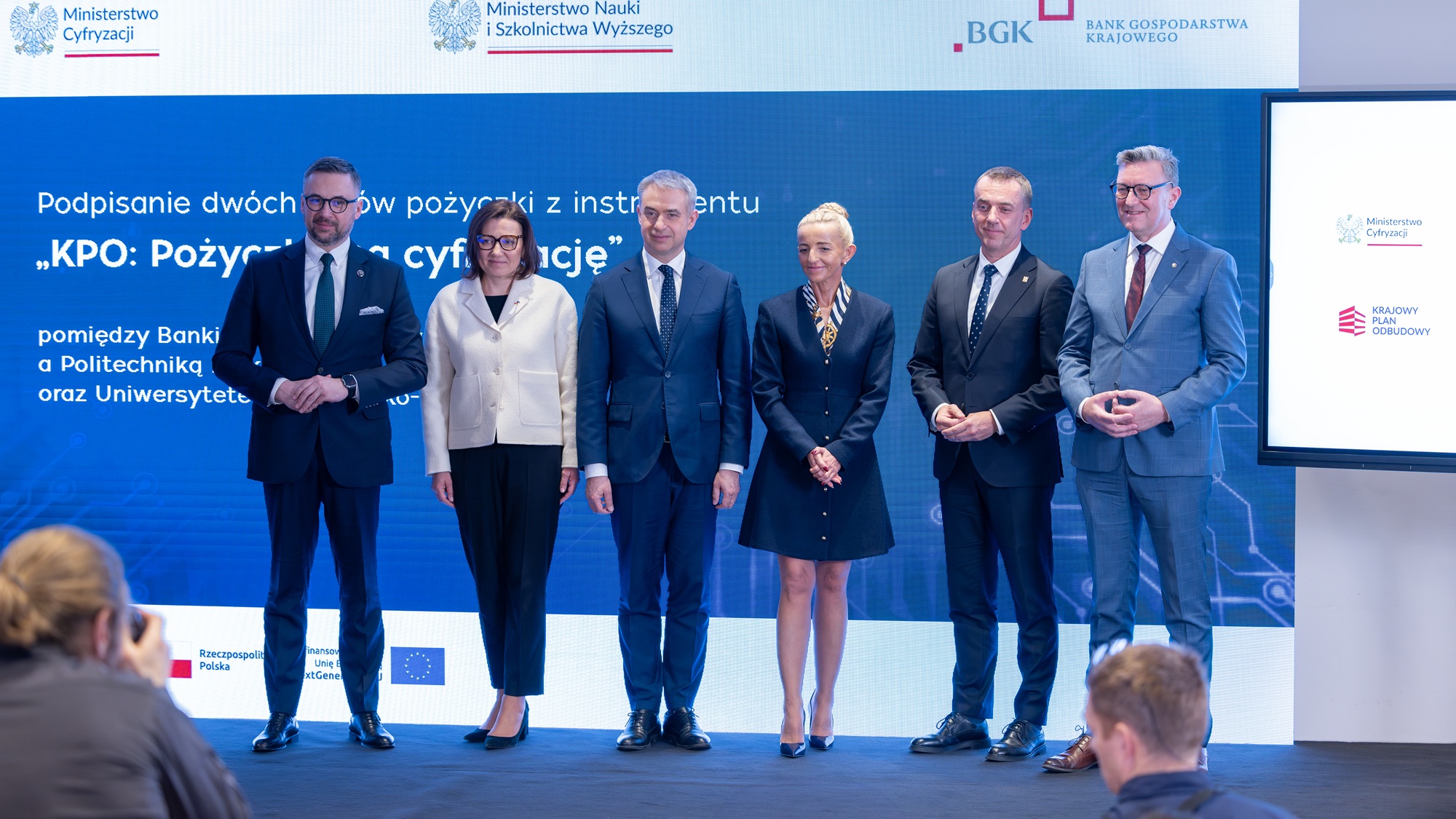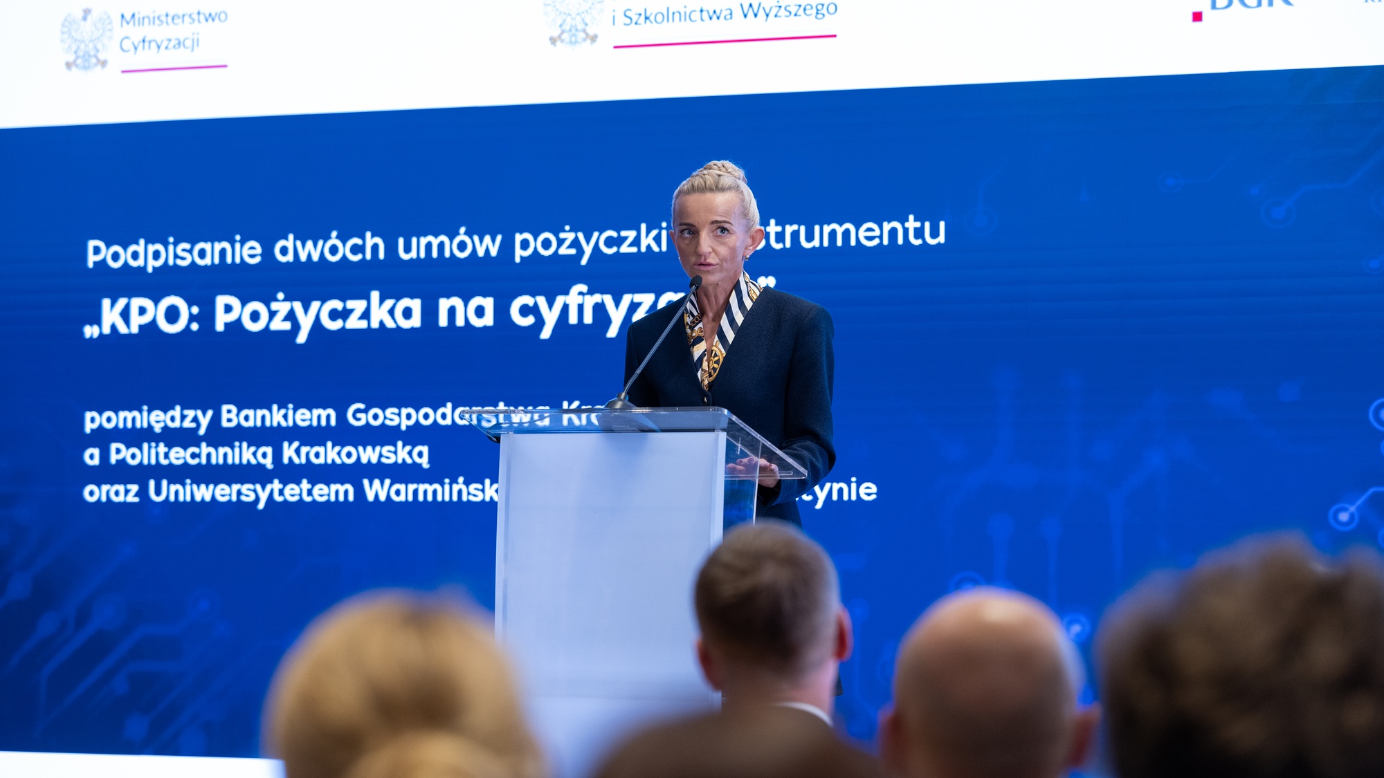 Politechnika Krakowska im. Tadeusza Kościuszki oraz Uniwersytet Warmińsko-Mazurski w Olsztynie jako pierwsze uczelnie w kraju otrzymają finansowanie z instrumentu „Pożyczka na cyfryzację” z Krajowego Planu Odbudowy i Zwiększania Odporności (KPO). Dzięki środkom na blisko 270 mln zł zrealizują ambitne programy unowocześniania swoich systemów i infrastruktury. Umowy podpisał dziś Bank Gospodarstwa Krajowego w obecności wicepremiera i ministra cyfryzacji Krzysztofa Gawkowskiego oraz ministra nauki i szkolnictwa wyższego, Marcina Kulaska.