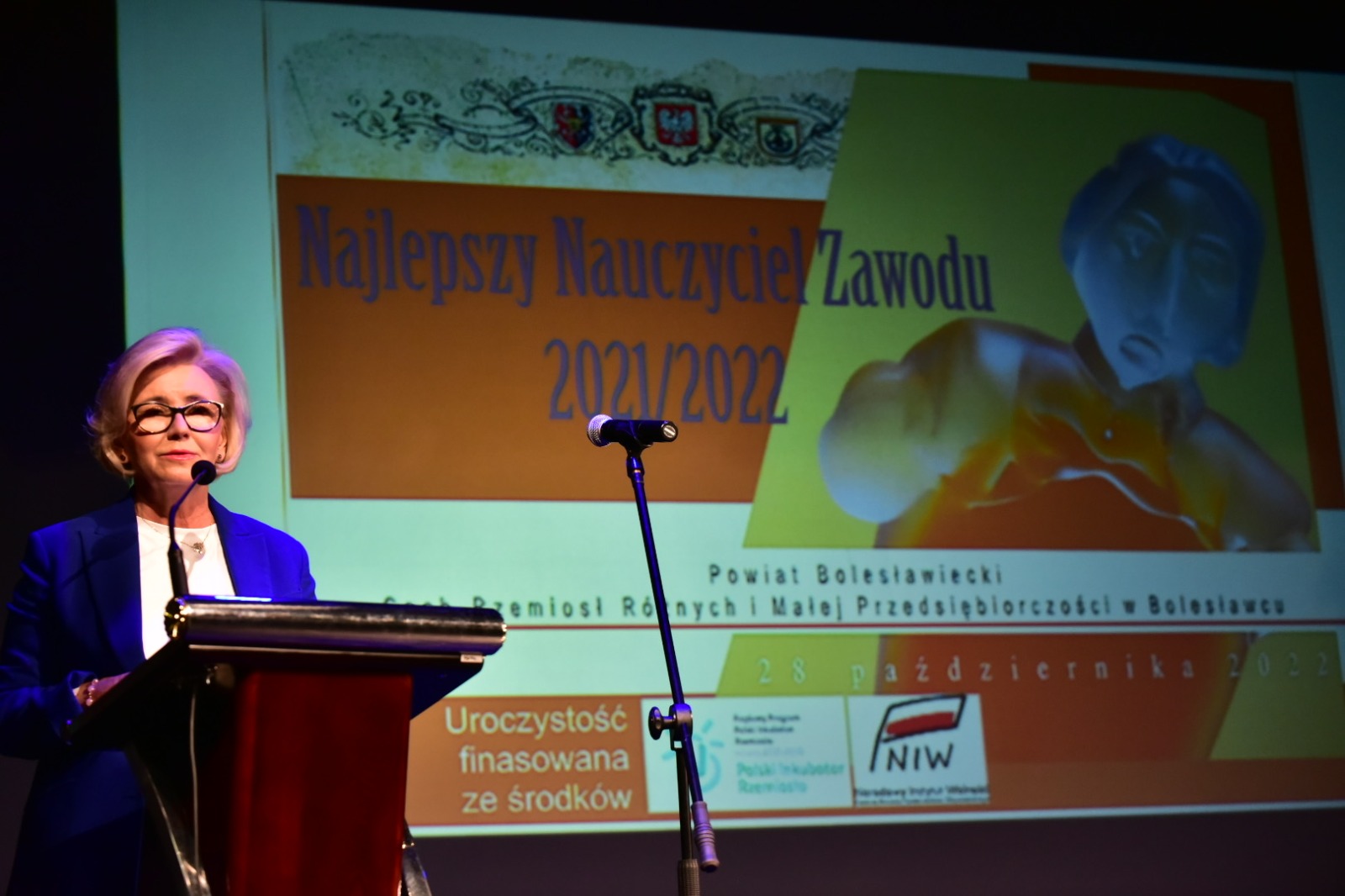 W Teatrze Starym w Bolesławcu wręczono nagrody w organizowanym przez Cech Rzemiosł Różnych i Małej Przedsiębiorczości z Bolesławca oraz Powiat Bolesławiecki konkursie „Najlepszy Nauczyciel Zawodu w roku szkolnym 2021/2022”. Podczas uroczystej Gali wiceminister Marzena Machałek podziękowała rzemieślnikom za wsparcie młodych wchodzących na rynek pracy oraz podkreśliła, że coraz więcej uczniów wybiera szkoły zawodowe.
