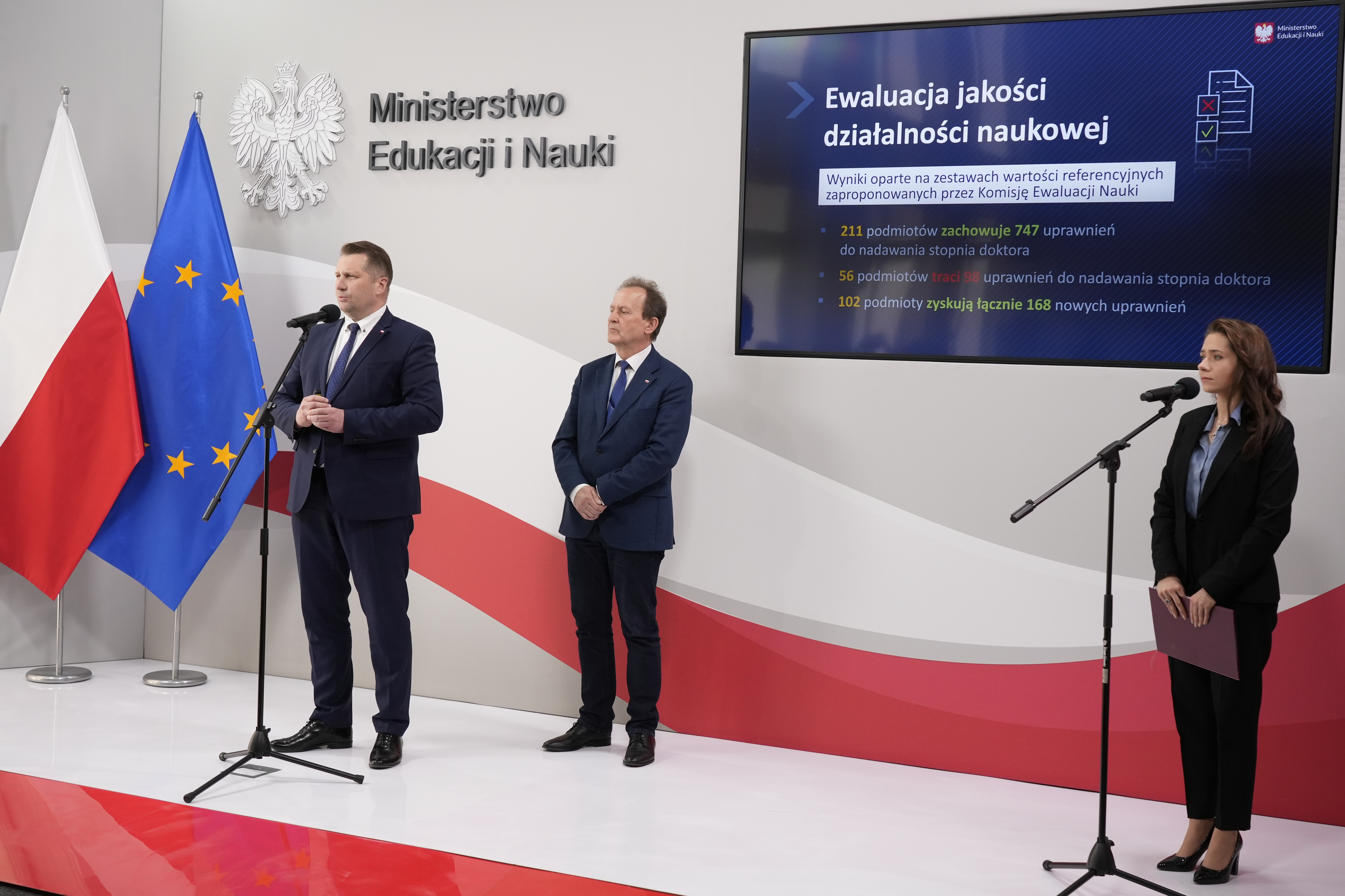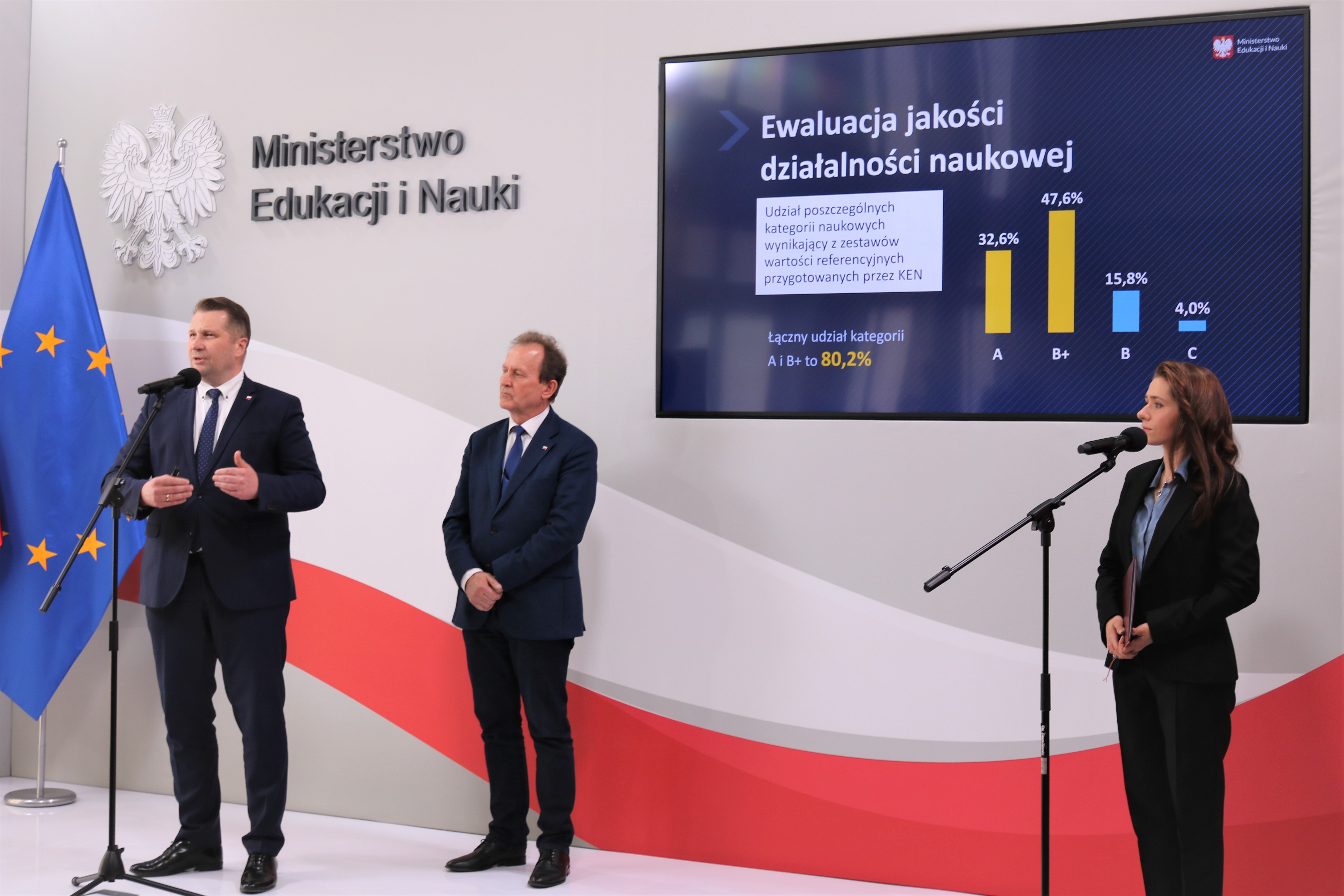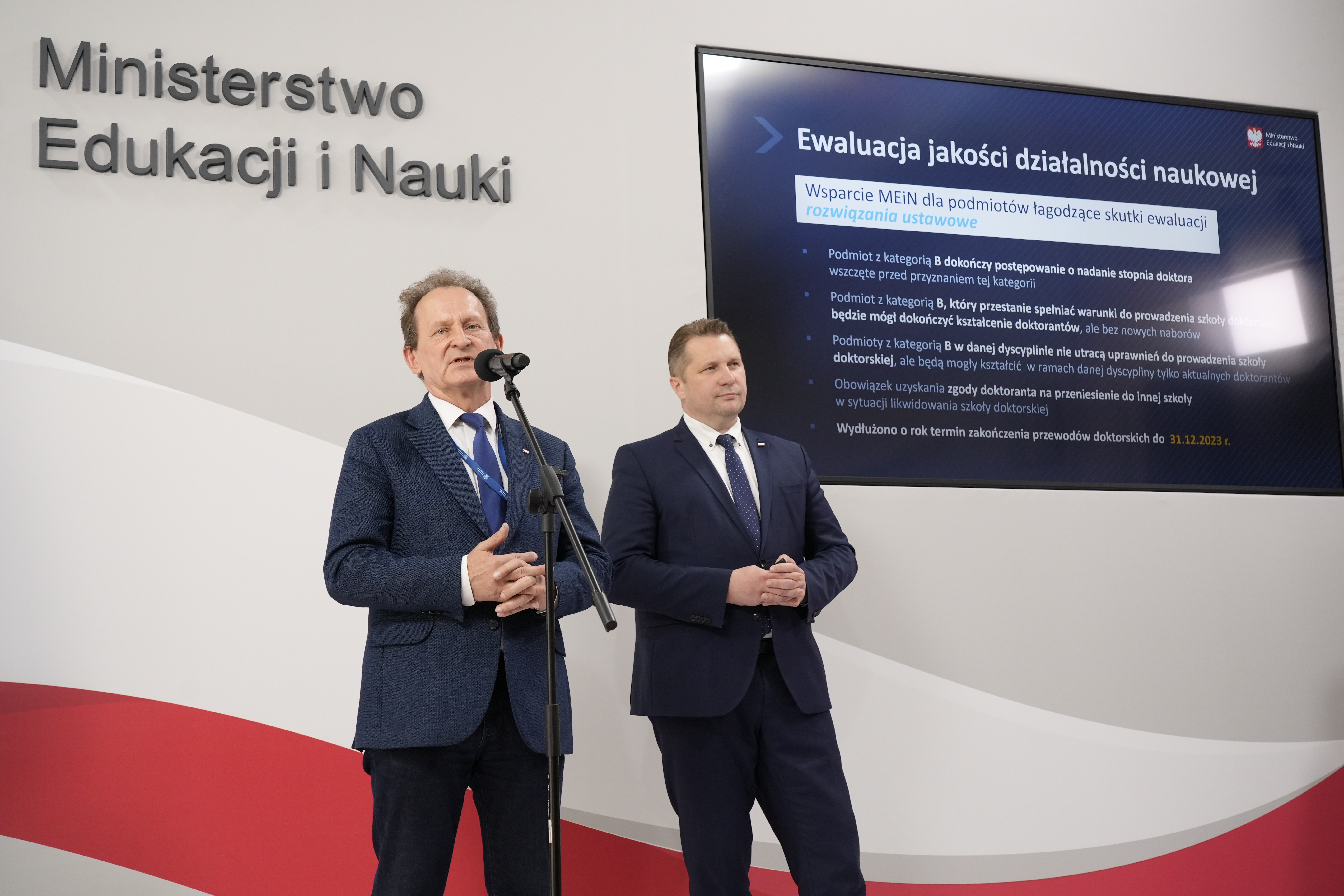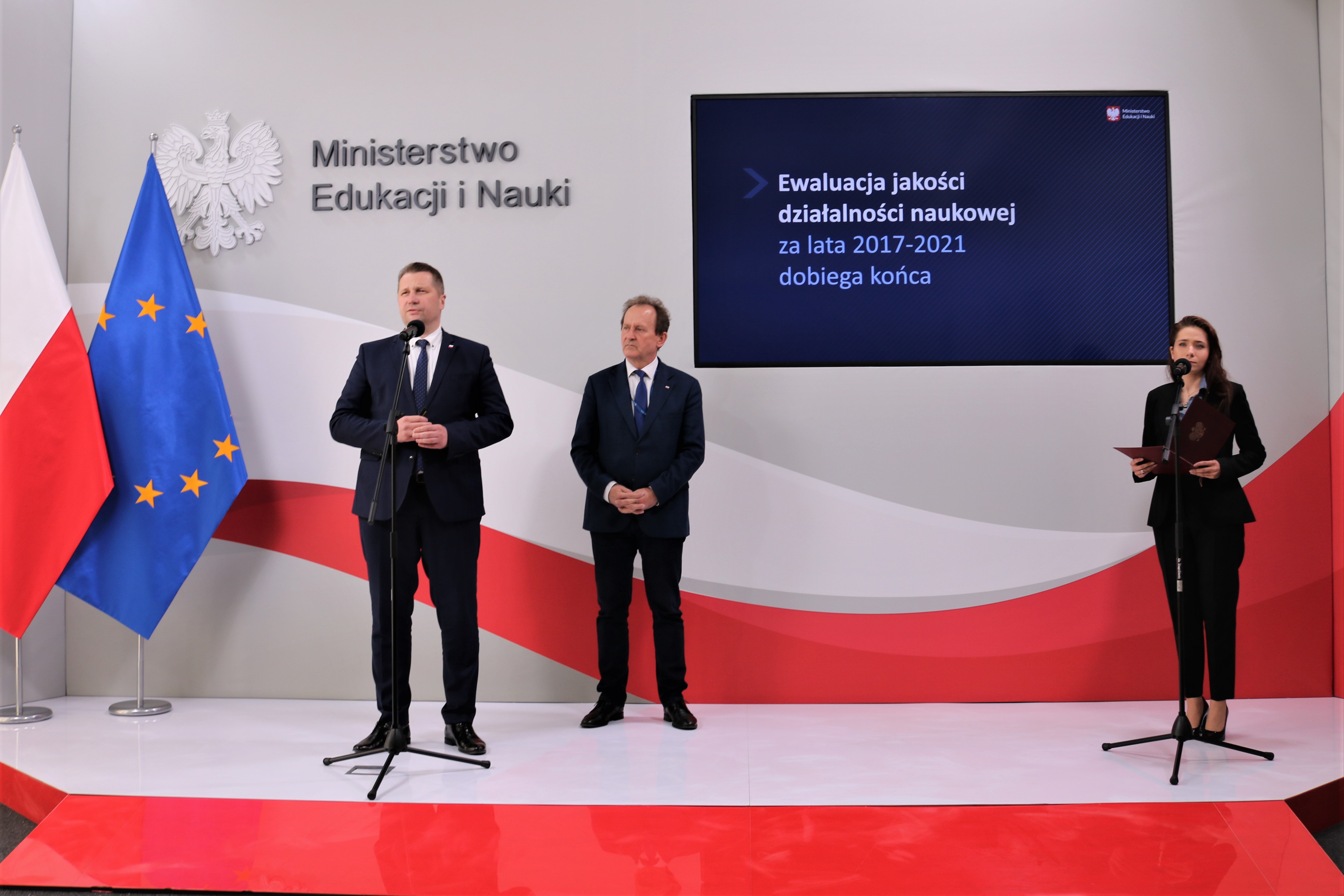 Podsumowanie pierwszego etapu ewaluacji jakości działalności naukowej za lata 2017-2021 – konferencja prasowa z udziałem ministra Przemysława Czarnka i wiceministra Włodzimierza Bernackiego