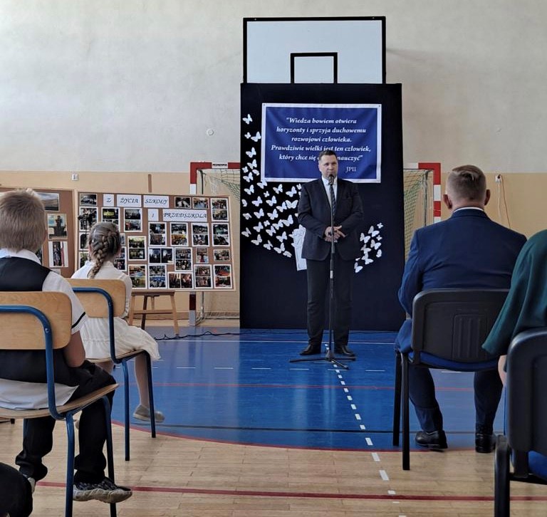 - Dziękuję za zaproszenie na tę ważną uroczystość, która jest zwieńczeniem wzorowej współpracy samorządów. To niezwykle cenne współdziałanie dla dobra uczniów, rodziców i kadry pedagogicznej szkoły. Serdecznie pozdrawiam całą szkolną społeczność i życzę wielu sukcesów edukacyjnych – powiedział minister.