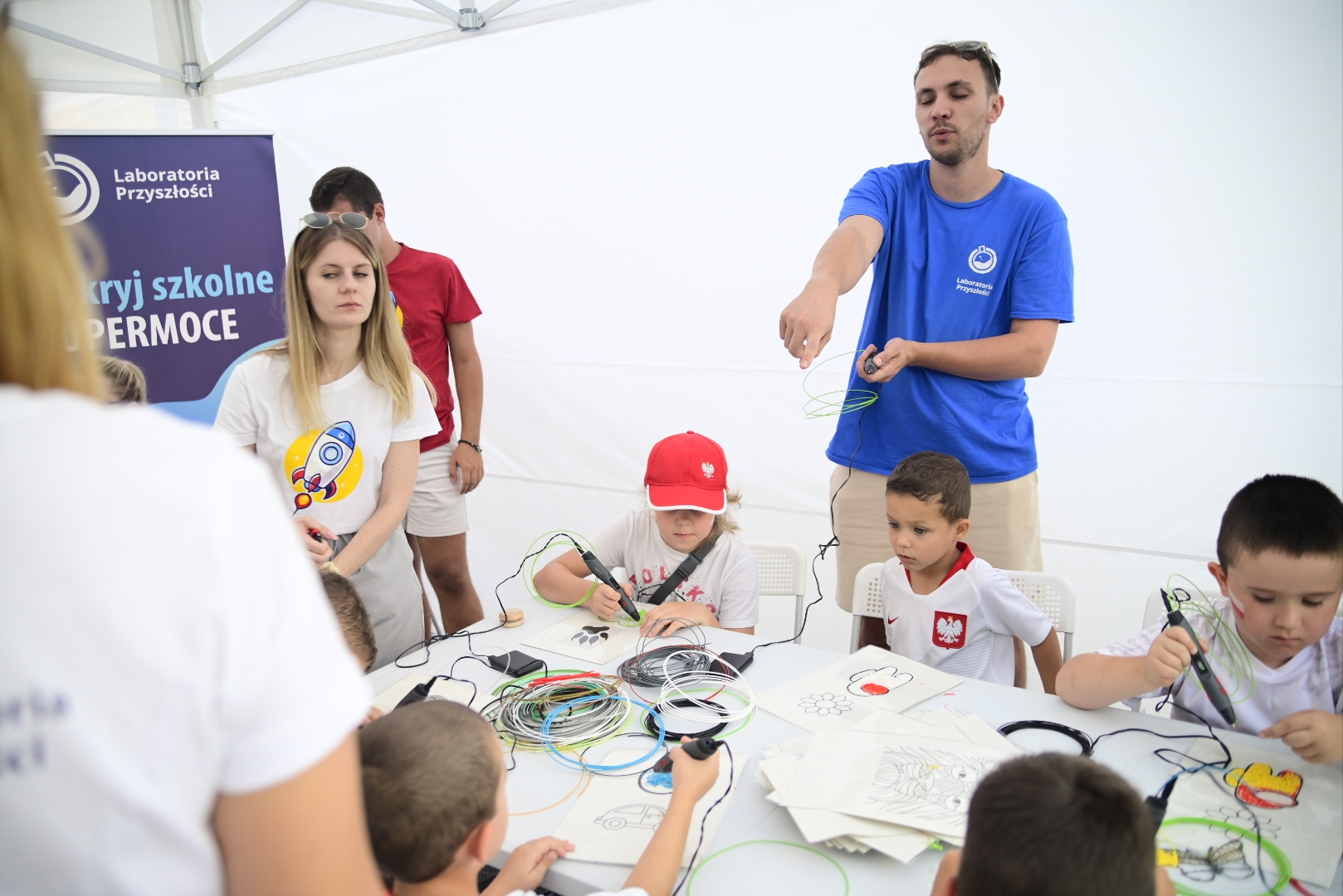 Młodzi kibice mogli rozwijać swoją kreatywność i kompetencje cyfrowe w strefie Mobilnych Laboratoriów Przyszłości (MLP). Do dyspozycji mieli m.in. drukarkę 3D i gogle VR.
