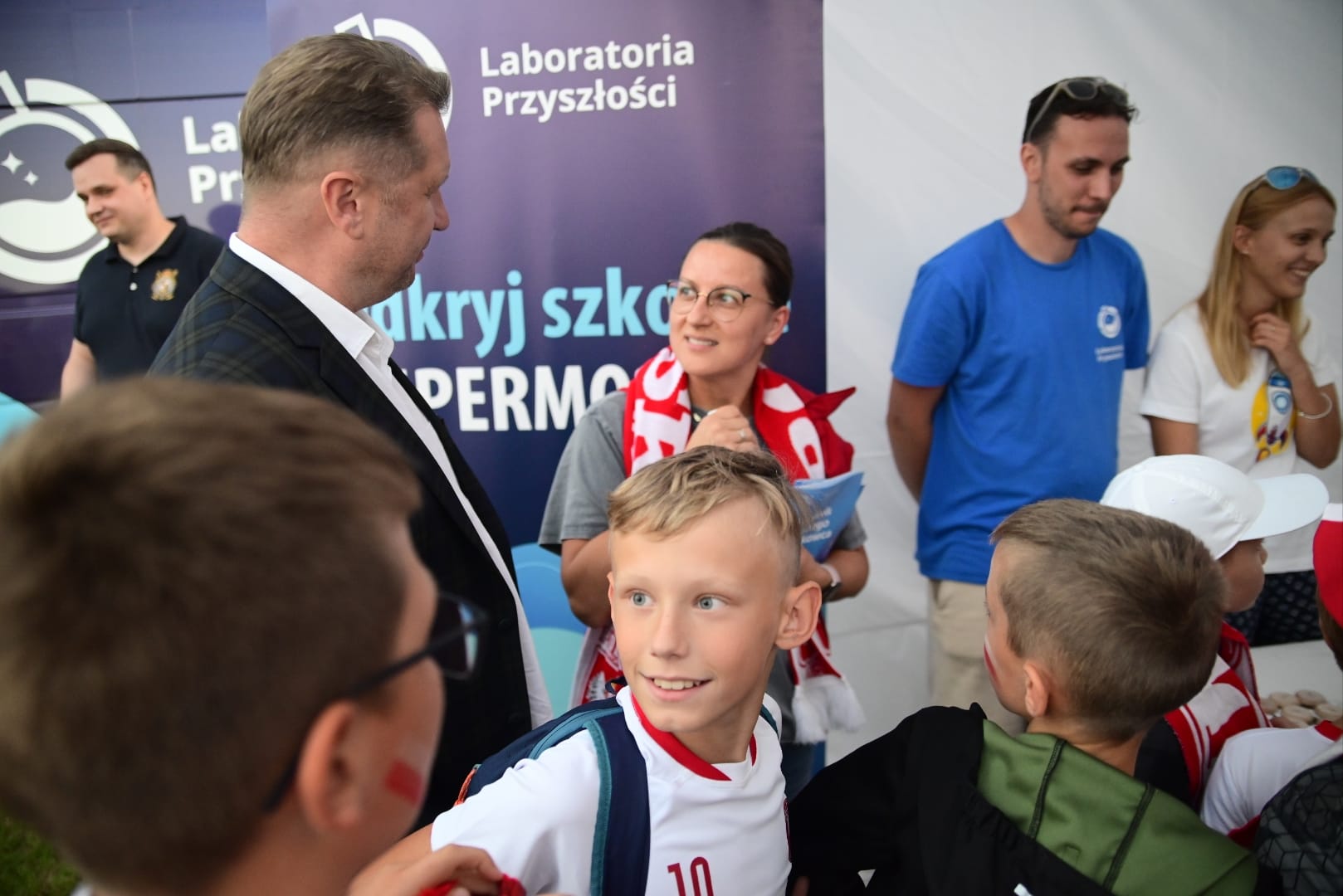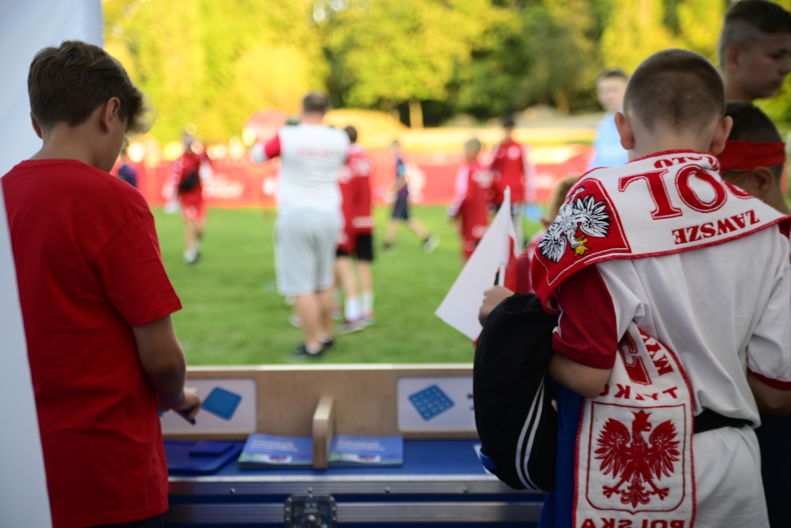 Przedmeczowy piknik na błoniach PGE Narodowy odwiedzili młodzi kibice, którzy przyjechali kibicować Biało-Czerwonym w ramach programu „Poznaj Polskę na sportowo”. Z myślą o nich Ministerstwo Edukacji i Nauki przygotowało wiele atrakcji.