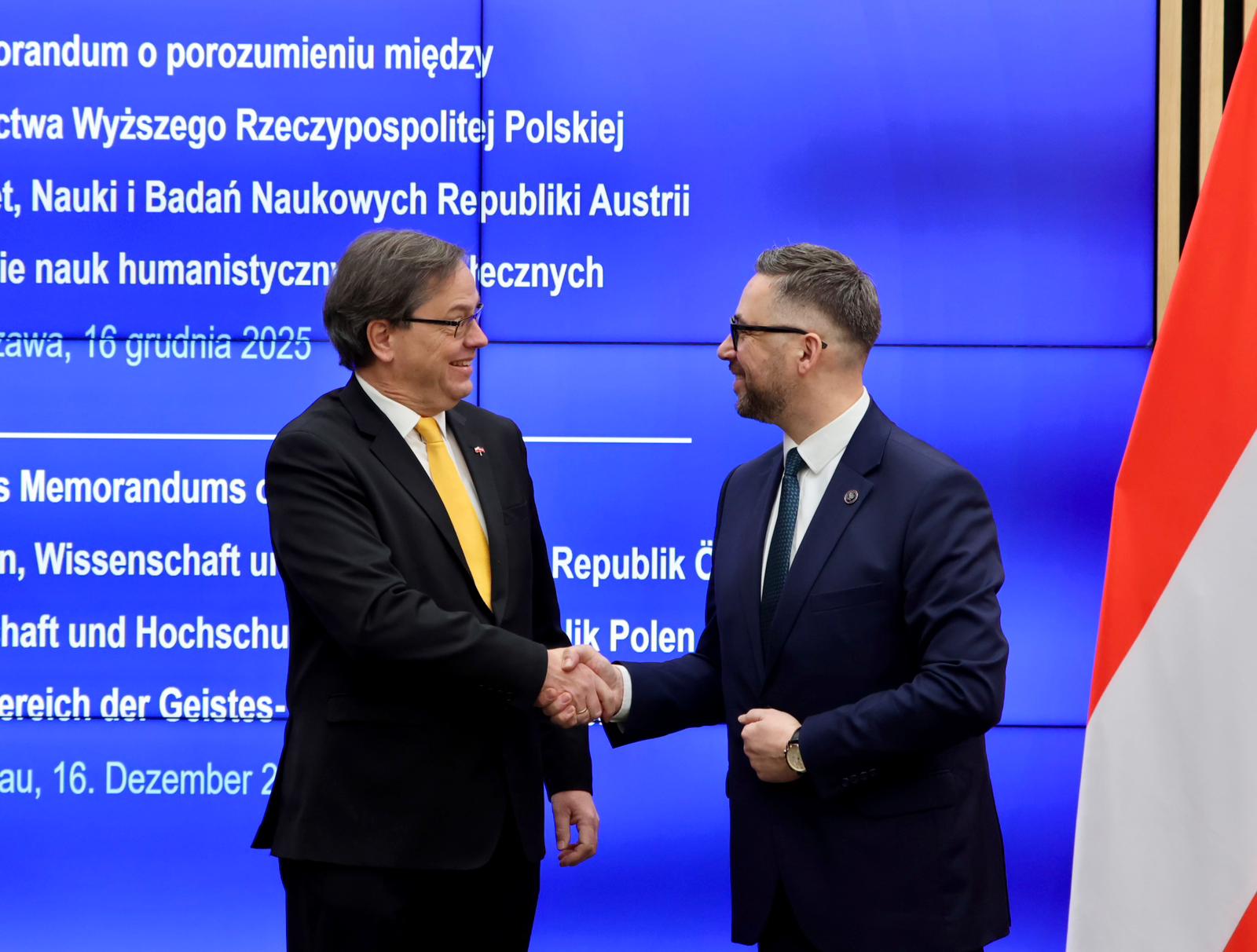 Wznowienie partnerstwa między Polską a Austrią otwiera nowy rozdział współpracy w obszarze nauki, badań i szkolnictwa wyższego. Memorandum o porozumieniu (MoU), podpisane we wtorek 16 grudnia br. przez ministra Marcina Kulaska oraz ambasadora Republiki Austrii w Polsce Hannesa Schreibera, przywraca formalne ramy współpracy z Instytutem Nauk o Człowieku w Wiedniu (IWM). Dokument zapewnia też stabilne finansowanie i rozwój programów stypendialnych, korzystnych dla polskich naukowców.