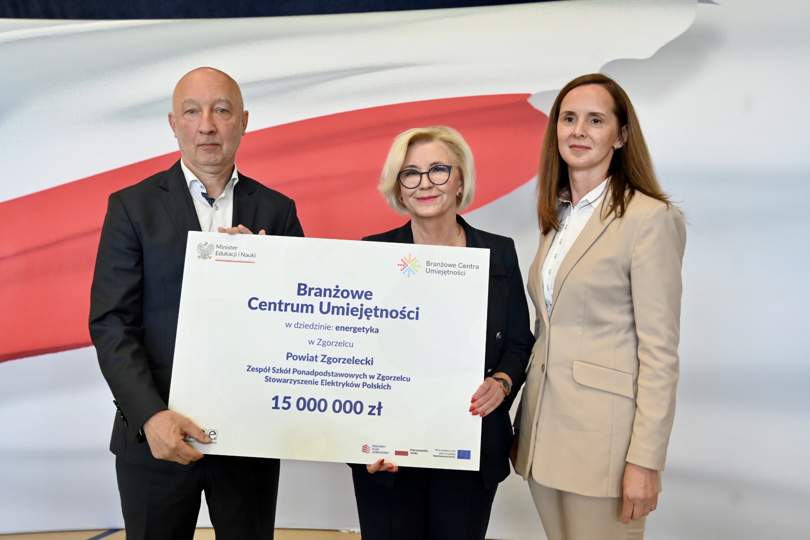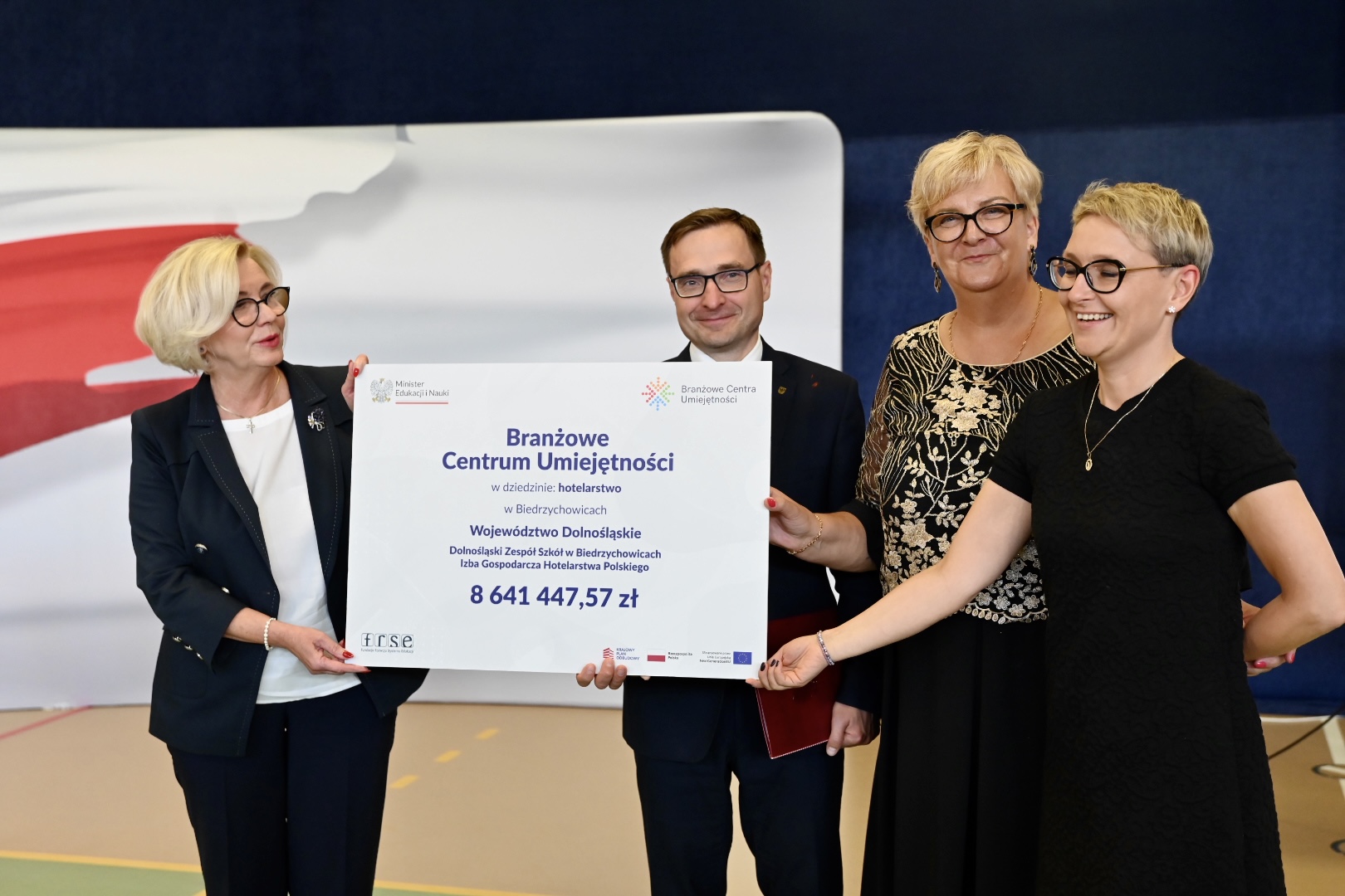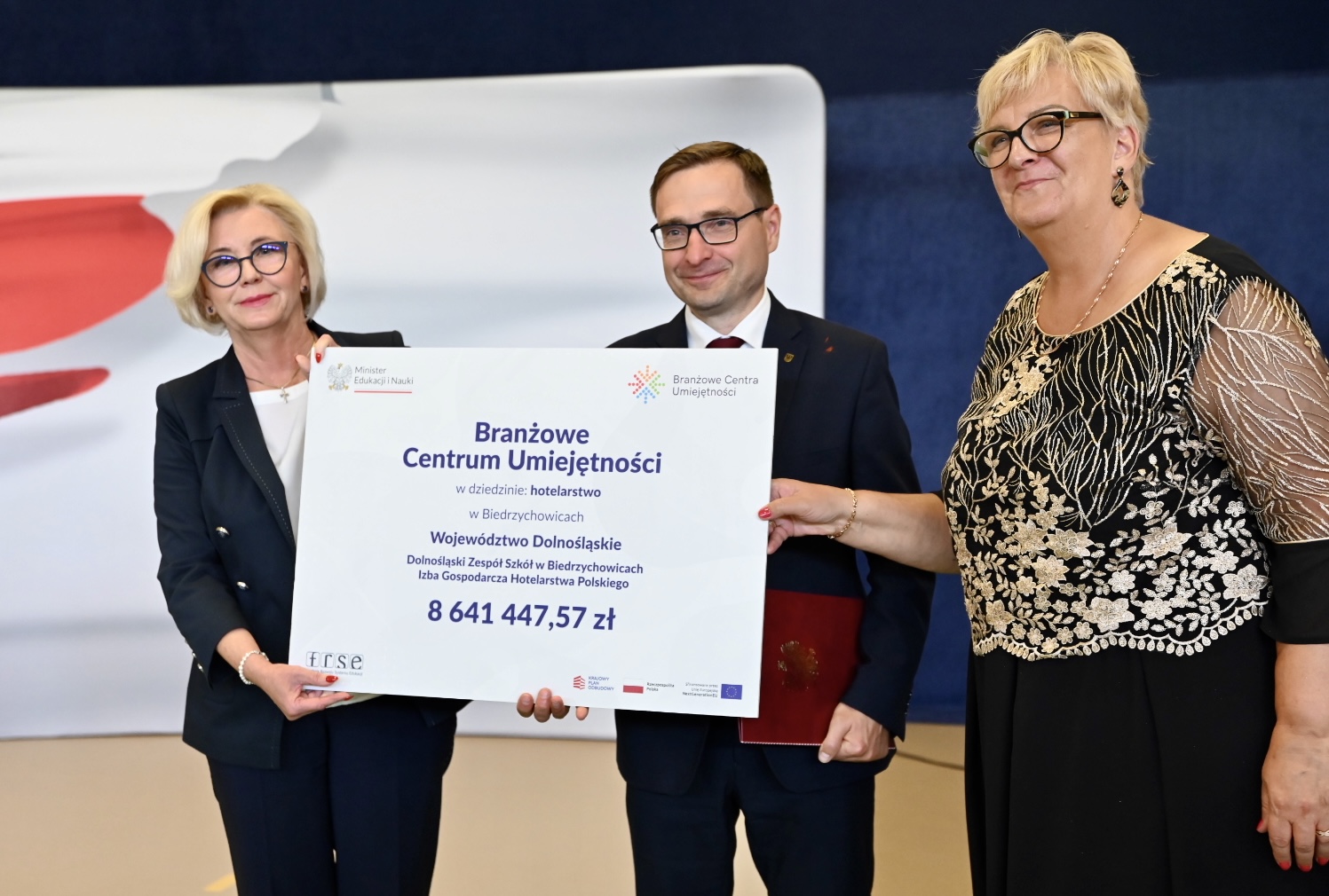 Podczas uroczystości w Dolnośląskim Zespole Szkół w Biedrzychowicach symboliczne czeki na utworzenie pięciu BCU (hotelarstwo, automatyka przemysłowa, elektryka, logistyka, energetyka) wręczyła beneficjentom Sekretarz Stanu w MEiN Marzena Machałek. Wcześniej w Ministerstwie Edukacji i Nauki podpisano umowy w dwóch dziedzinach (mechatronika oraz górnictwo podziemne, przeróbka rud metali i surowców mineralnych).