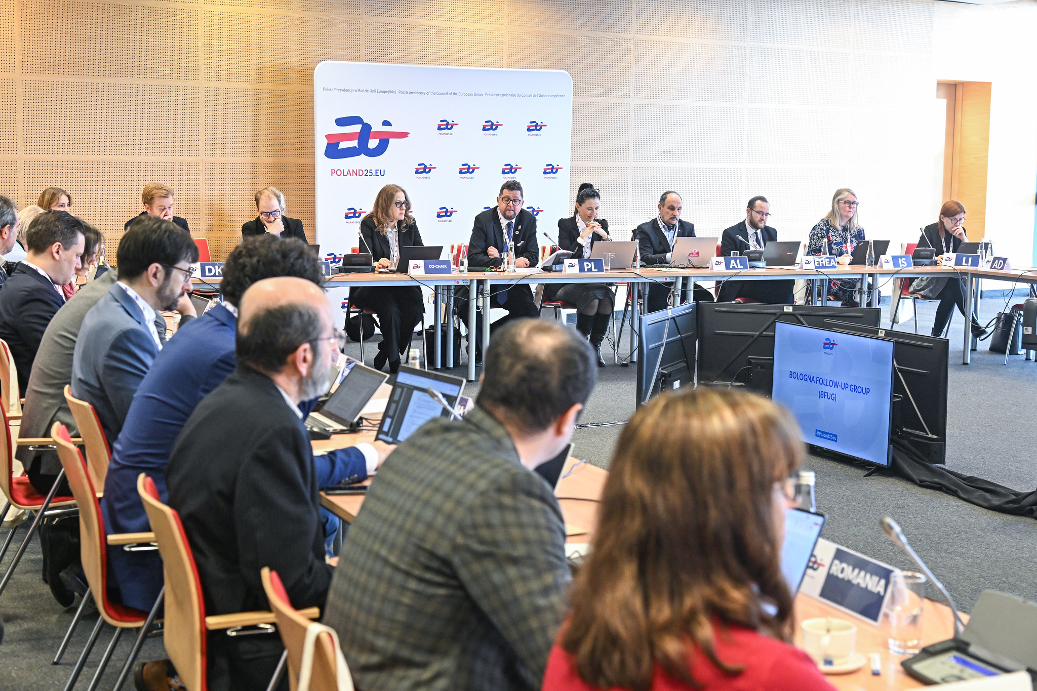 Podczas posiedzenia Bologna Follow-up Group omawiano postępy prac grup roboczych, które pracują nad rozwijaniem tematów zawartych w Komunikacie końcowym konferencji ministrów w Tiranie w 2024 roku, w tym w zakresie umiędzynarodowienia i mobilności, uczenia się przez całe życie, oraz rewizji European Standards and Guidelines for Quality Assurance.
