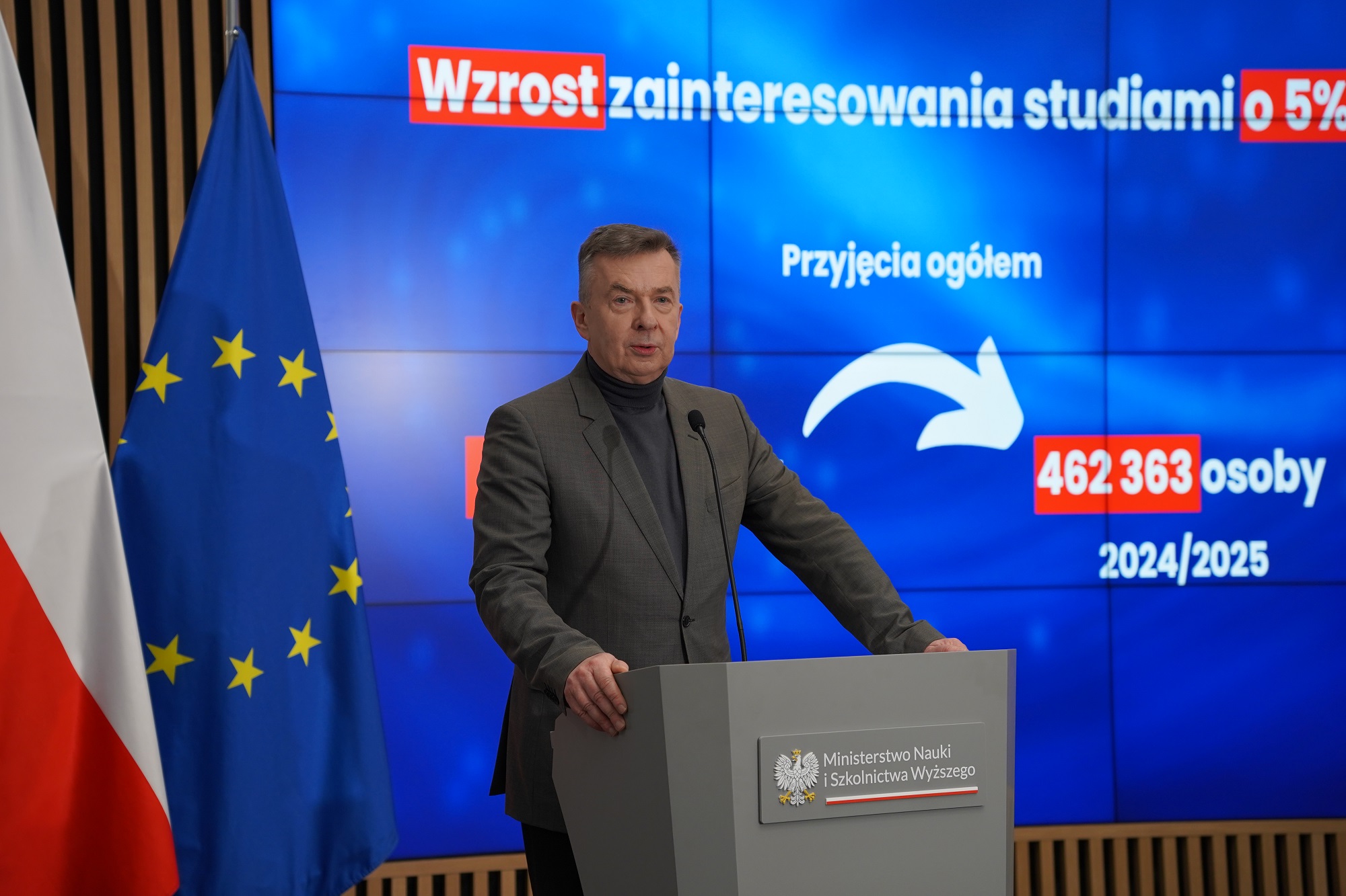 Jak wskazał Dariusz Wieczorek, uczelnie przyjęły o 5% więcej studentów niż w ubiegłym roku. Łącznie na studiach w Polsce kształci się 462 363 nowych studentów.