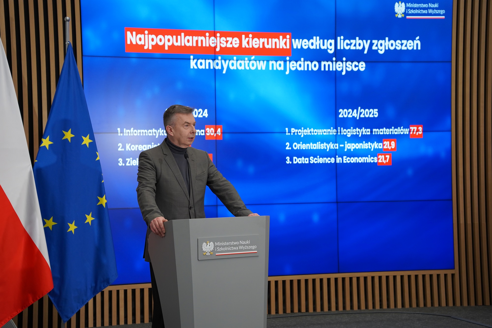 Wzrost zainteresowania studiami, ich kontynuacją na drugim stopniu studiów oraz nowe najbardziej oblegane kierunki. Takie dane, oparte na bazie POL-on, przedstawił minister nauki Dariusz Wieczorek. Podczas konferencji prasowej podkreślił przy tym, że MNiSW ma świadomość wyzwań demograficznych w kolejnych latach.