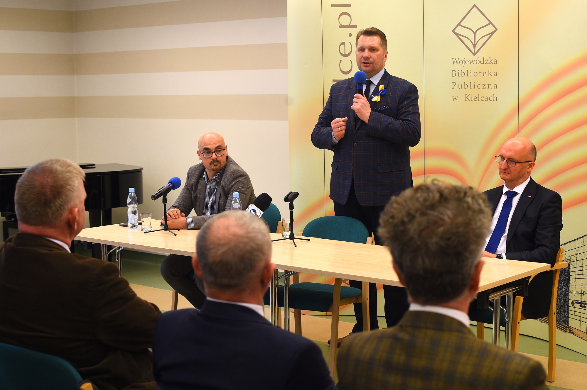 W spotkaniu, które odbyło się w Wojewódzkiej Bibliotece Publicznej im. Witolda Gombrowicza w Kielcach, uczestniczył także Sekretarz Stanu w MSZ Piotr Wawrzyk, Świętokrzyski Kurator Oświaty Kazimierz Mądzik oraz Wiceprezes Zarządu Fundacji Instytut Świętokrzyski Mariusz Goraj.