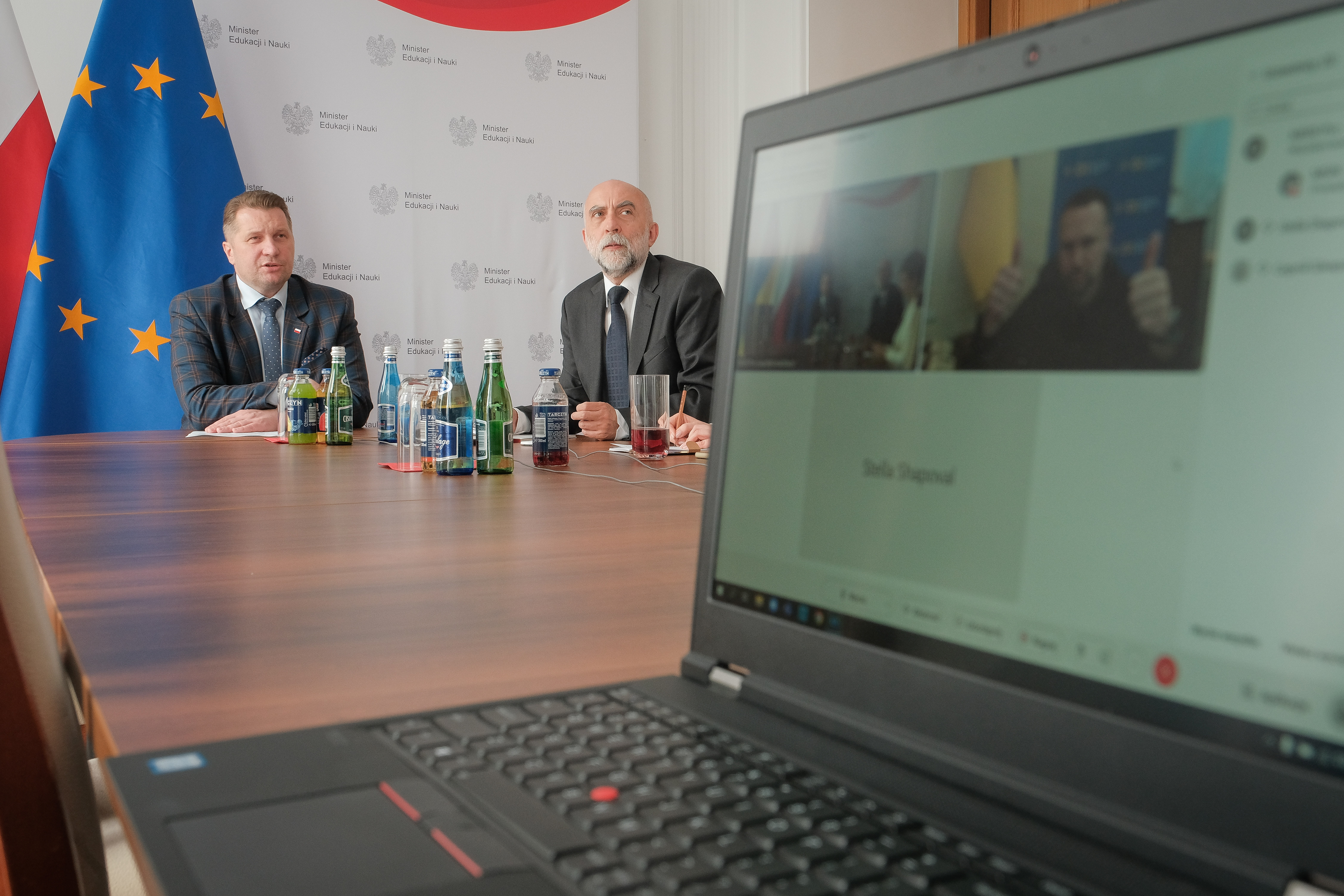 Minister Edukacji i Nauki Przemysław Czarnek rozmawiał z ukraińskim Ministrem Oświaty i Nauki Serhiyem Shkarletem. Spotkanie w formie on-line dotyczyło m.in. wsparcia organizacyjnego na terenie Polski przy przeprowadzaniu egzaminów wstępnych na studia w Ukrainie.