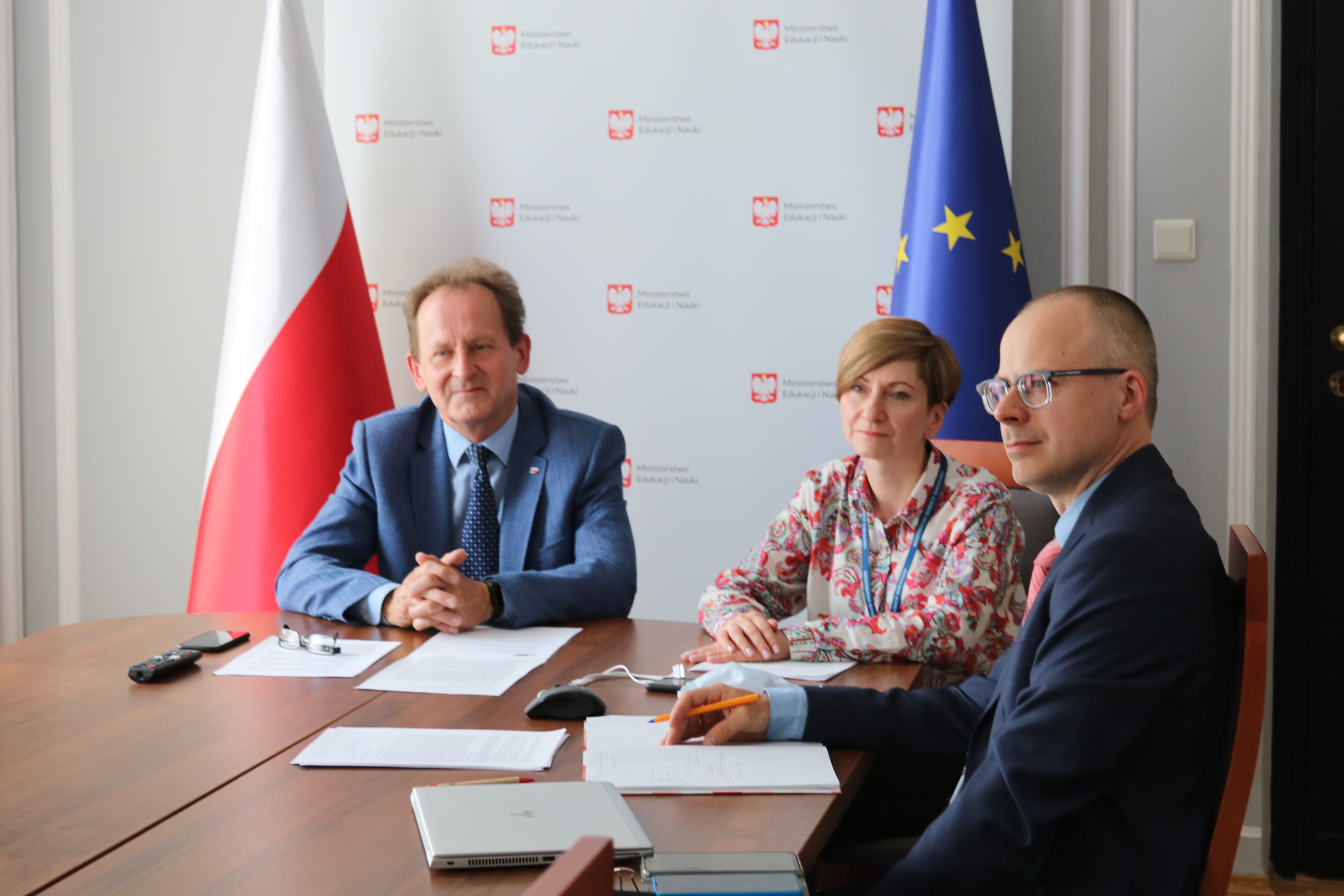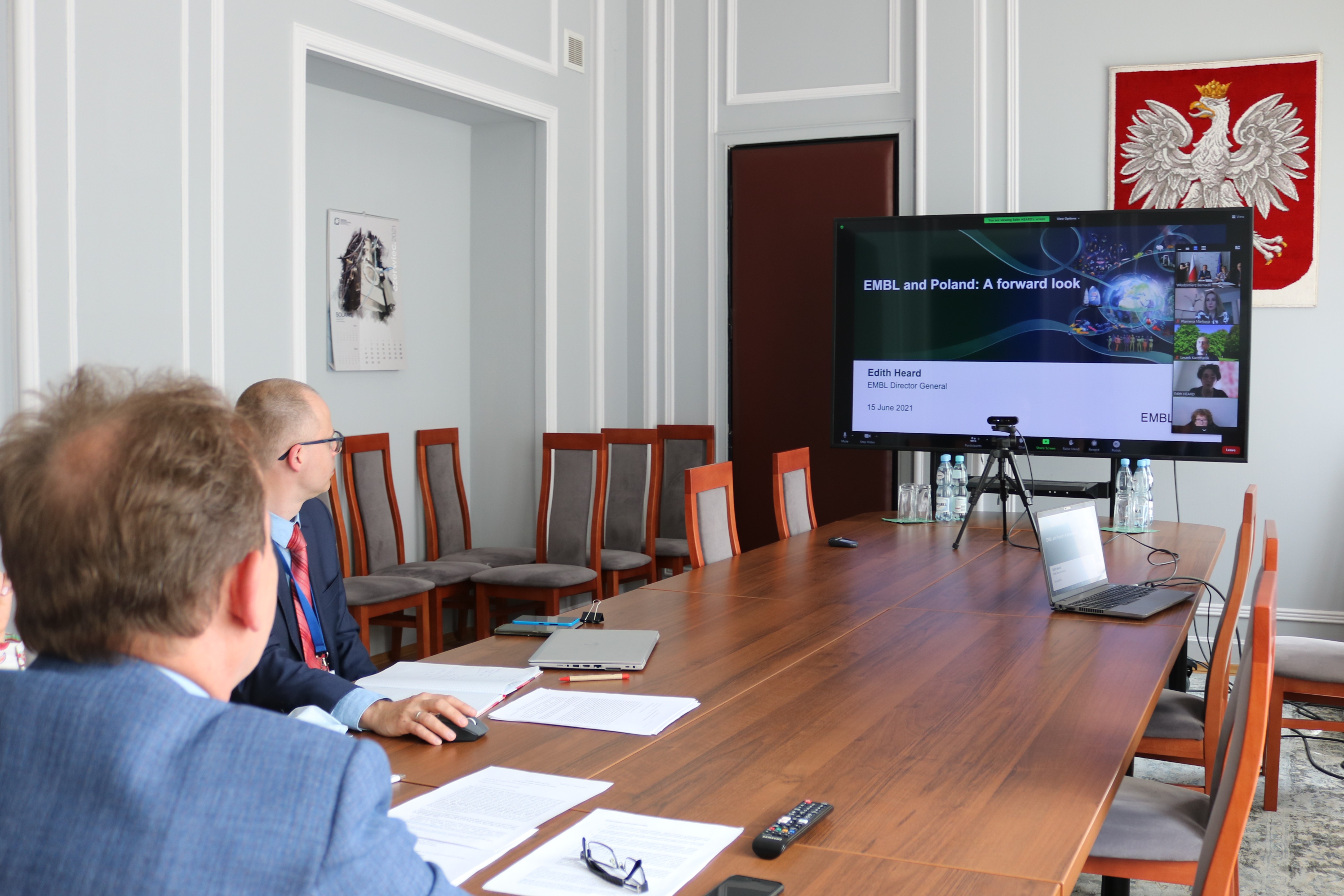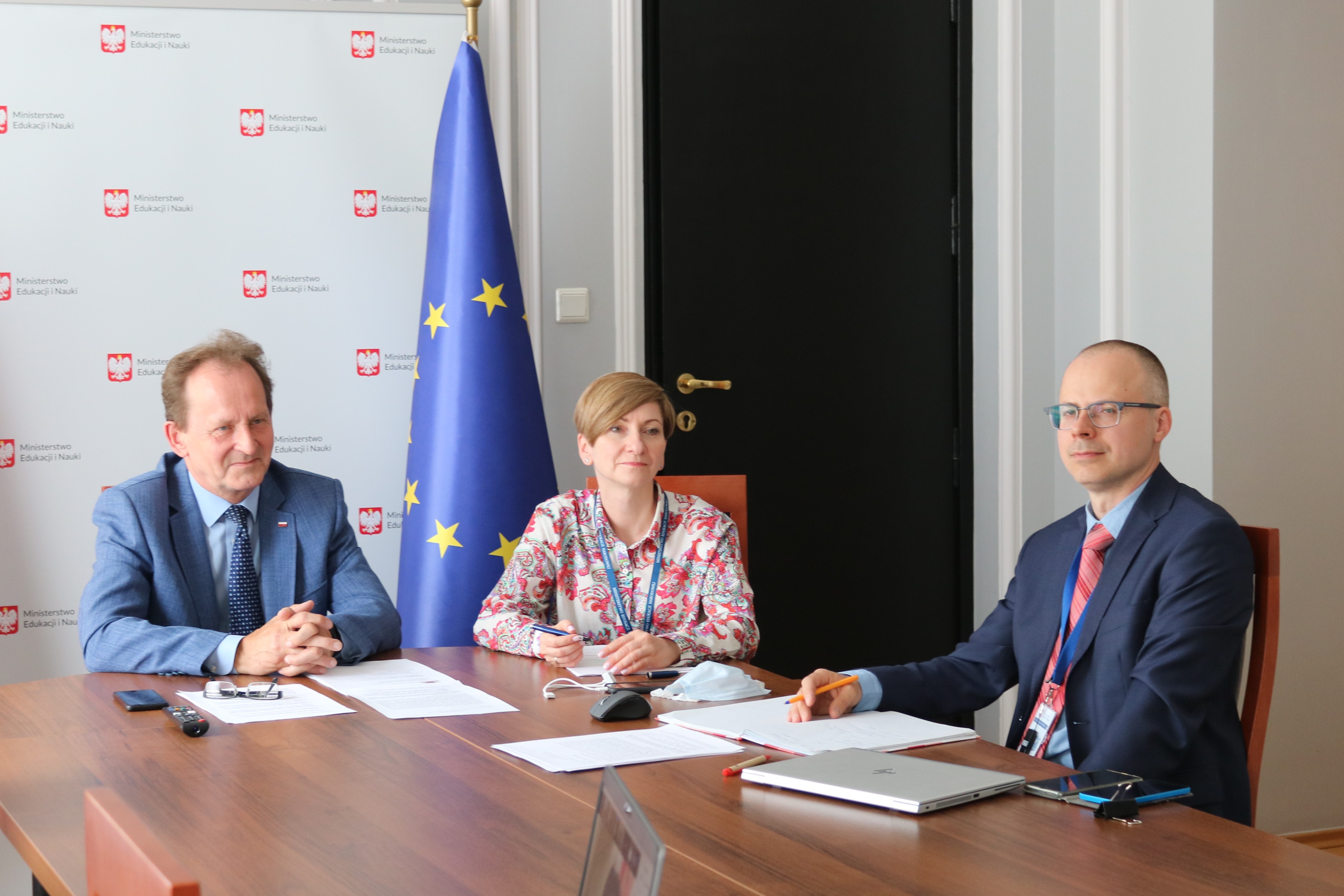 We wtorek, 15 czerwca br. odbyło się spotkanie online z udziałem wiceministra Włodzimierza Bernackiego z Edith Heard, Dyrektor Generalną Europejskiego Laboratorium Biologii Molekularnej (EMBL). Celem rozmowy było omówienie perspektyw dla polskiego środowiska naukowego w związku z trwającymi w ramach EMBL pracami nad nowym Programem Naukowym na lata 2022 – 2026, a także nad pięcioletnim Planem Budżetowym.