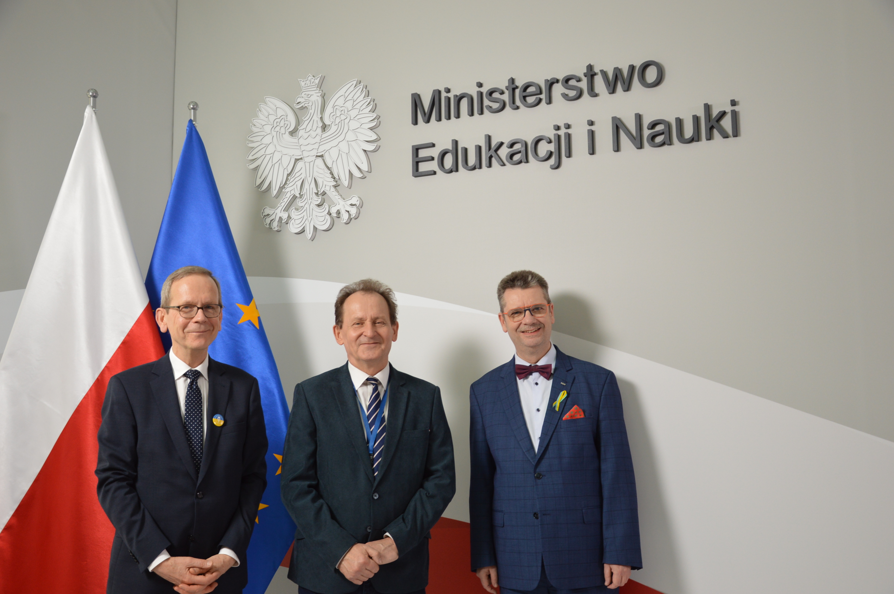 W spotkaniu z wiceministrem Włodzimierzem Bernackim uczestniczyli: prof. dr hab. Maciej Żukowski, przewodniczący Konferencji Rektorów Uczelni Ekonomicznych oraz dr hab. Piotr Wachowiak, wiceprzewodniczący KRUE. Uczestnicy omawiali kwestie regulacji prawnych programu Master of Business Administration w Polsce oraz zagadnienia związane z rozwojem tej formy edukacji menedżerskiej.