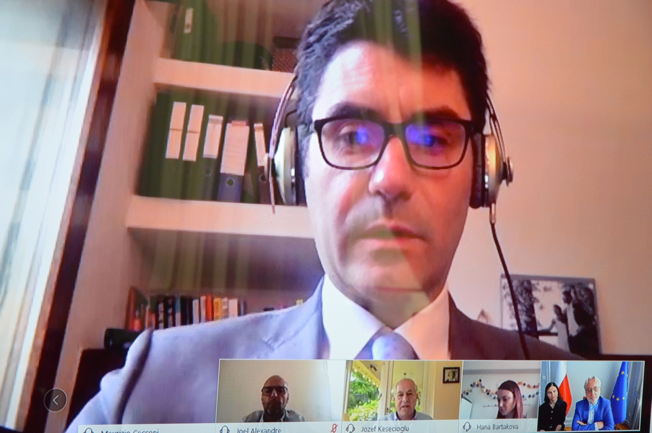 Prof. Wojciech Maksymowicz, sekretarz stanu w Ministerstwie Nauki i Szkolnictwa Wyższego uczestniczył w zdalnym spotkaniu z Mauriziem Cecconi i Jozefem Kesecioglu, przedstawicielami władz Europejskiego Towarzystwa Intensywnej Terapii (ESICM).