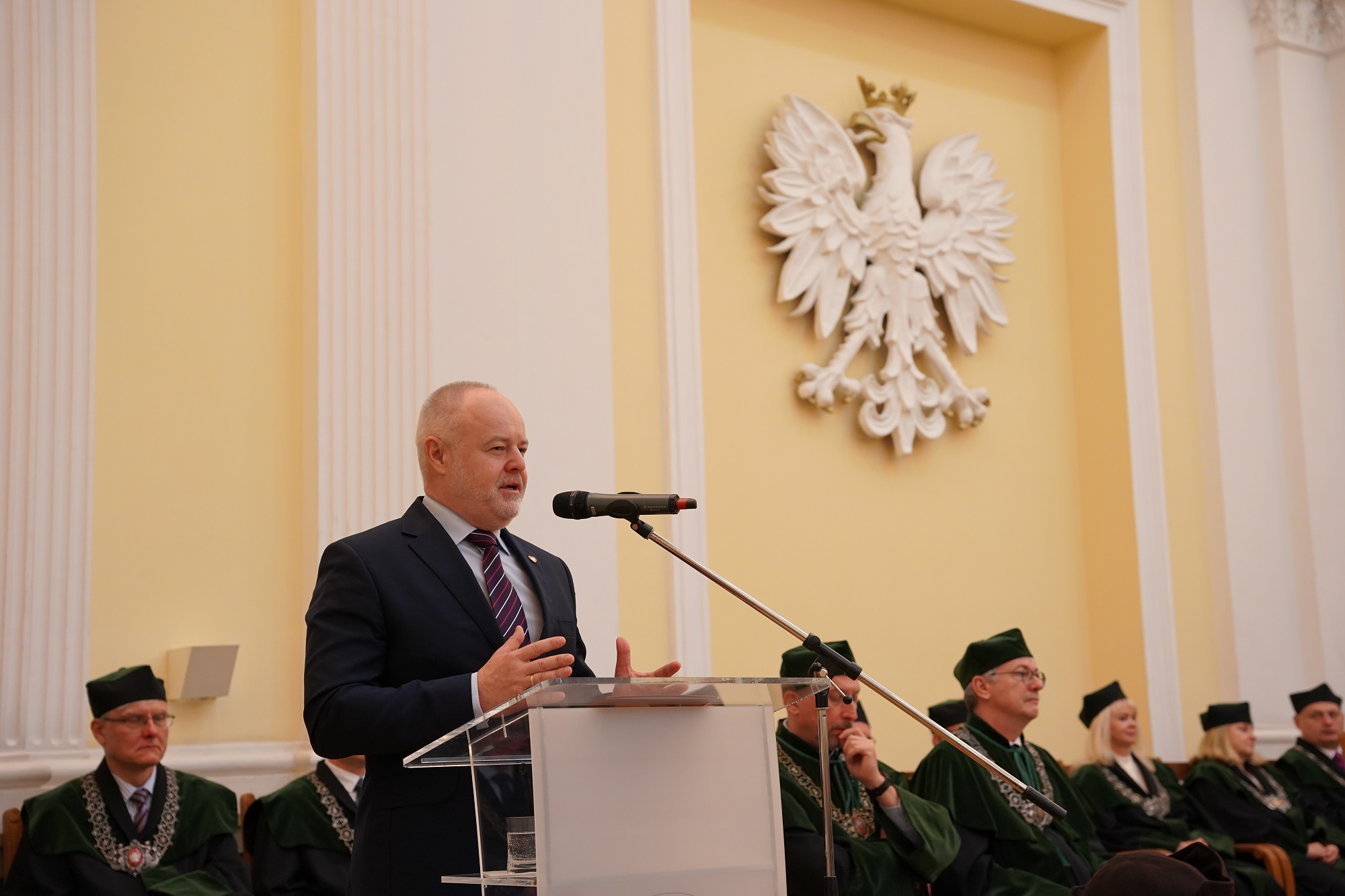 W swoim przemówieniu wiceminister Marek Gzik podkreślił rolę Politechniki Warszawskiej w rozwoju polskiej nauki i gospodarki.