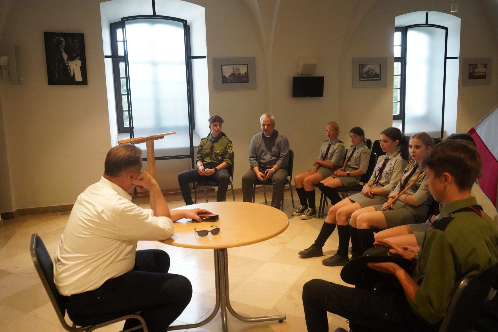 Grupa harcerzy z Rajgrodu wspólnie z szefem MEiN wzięła również udział w pasjonującej lekcji historii poświęconej Klasztorowi Pokamedulskiemu w Wigrach.