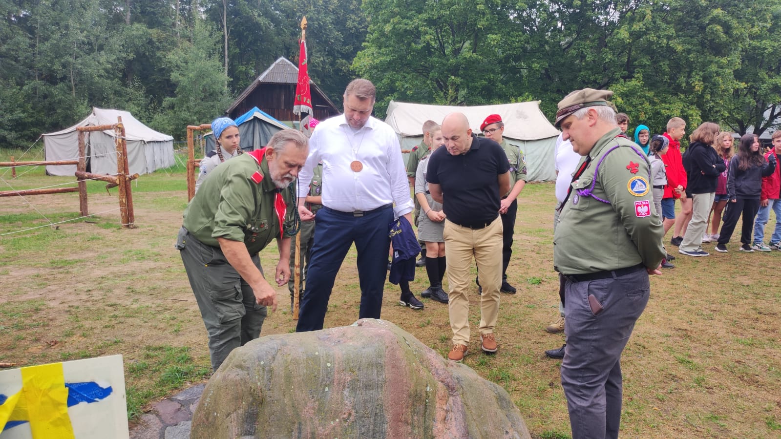 Minister Przemysław Czarnek spotkał się także z grupą harcerzy w bazie harcerskiej „Orle Gniazdo” w Opartowie koło Rajgrodu. W tym miejscu od dwóch dekad odbywają się warsztaty i zajęcia poświęcone edukacji historycznej. W bazie harcerskiej są także prowadzone ćwiczenia wojskowe.