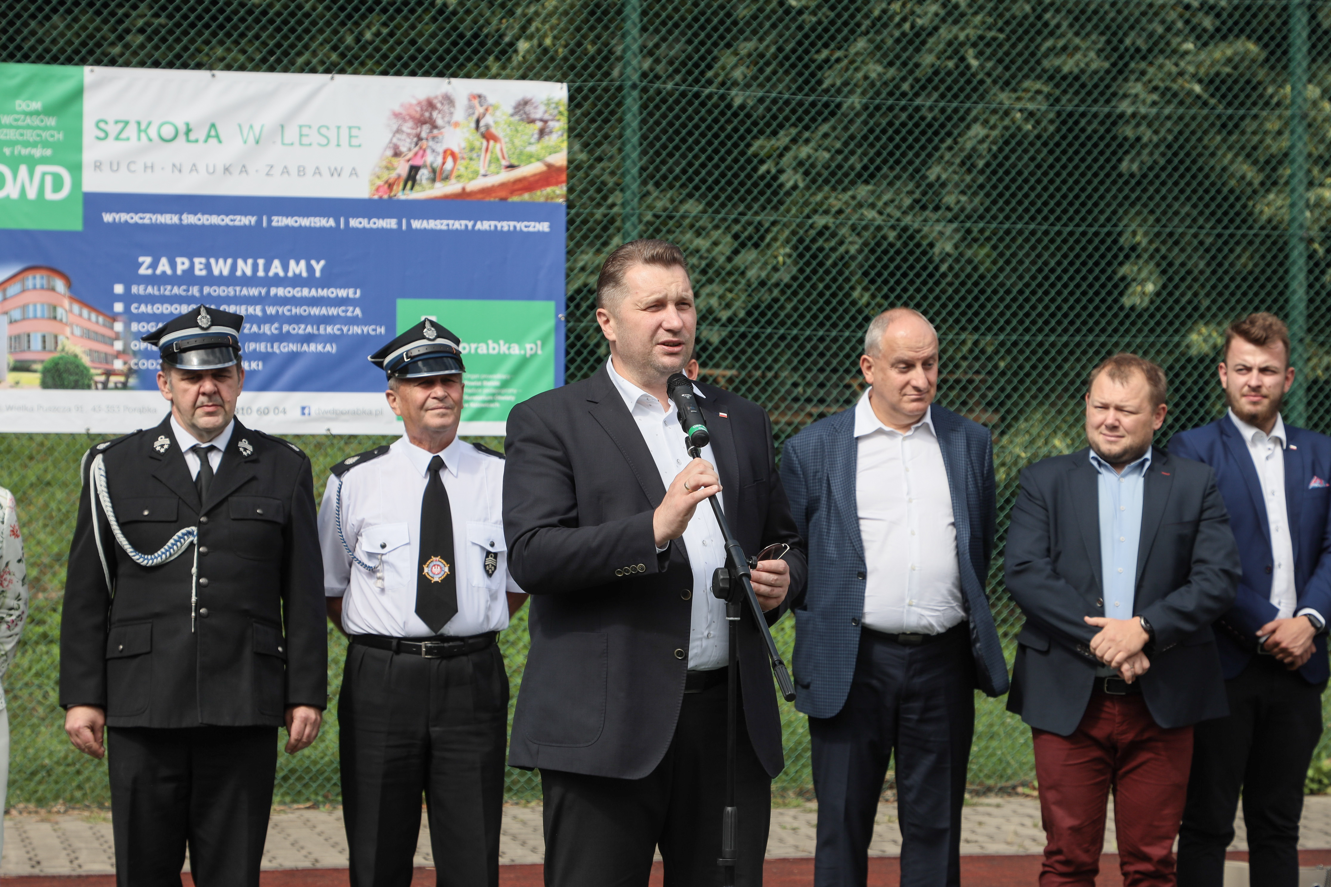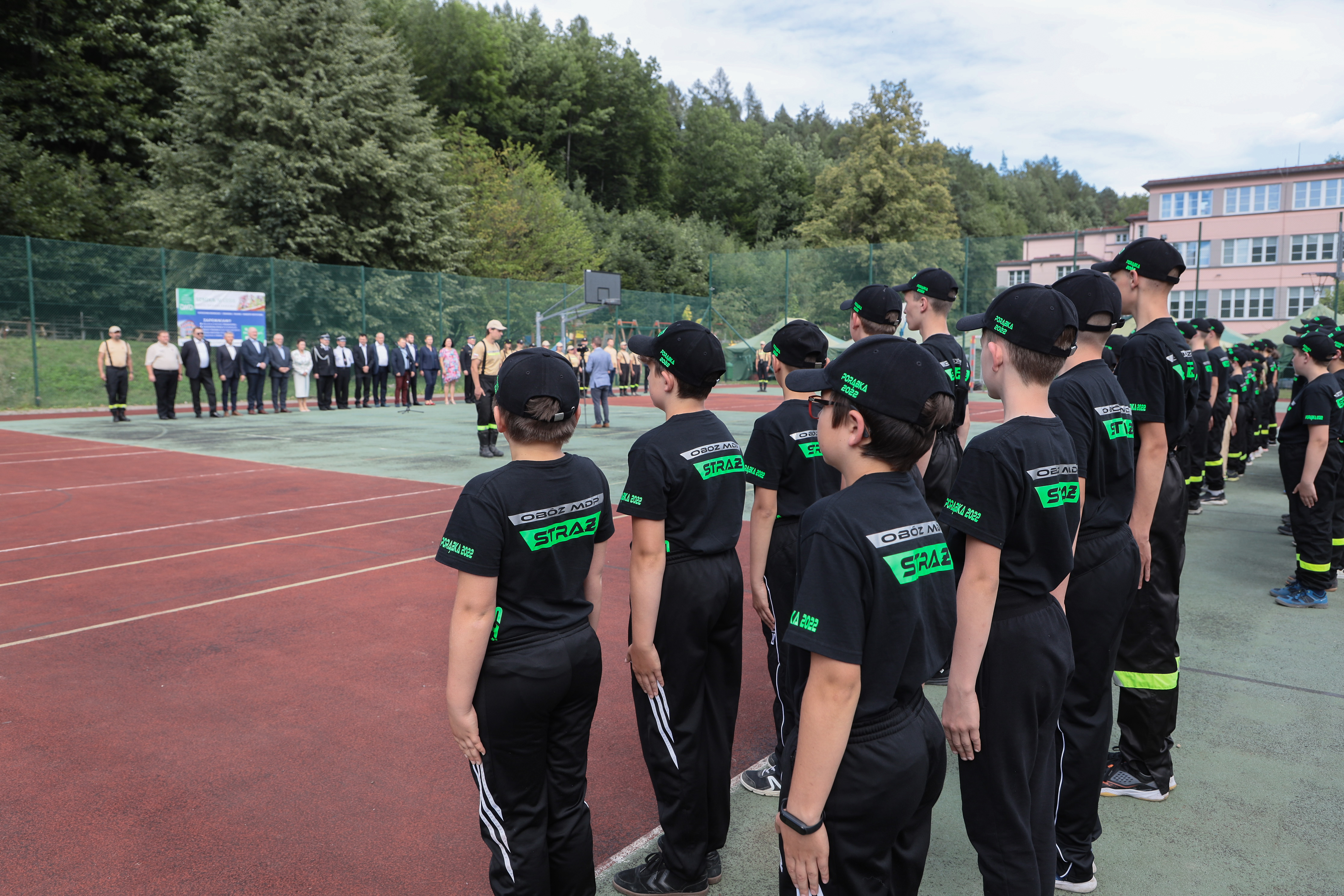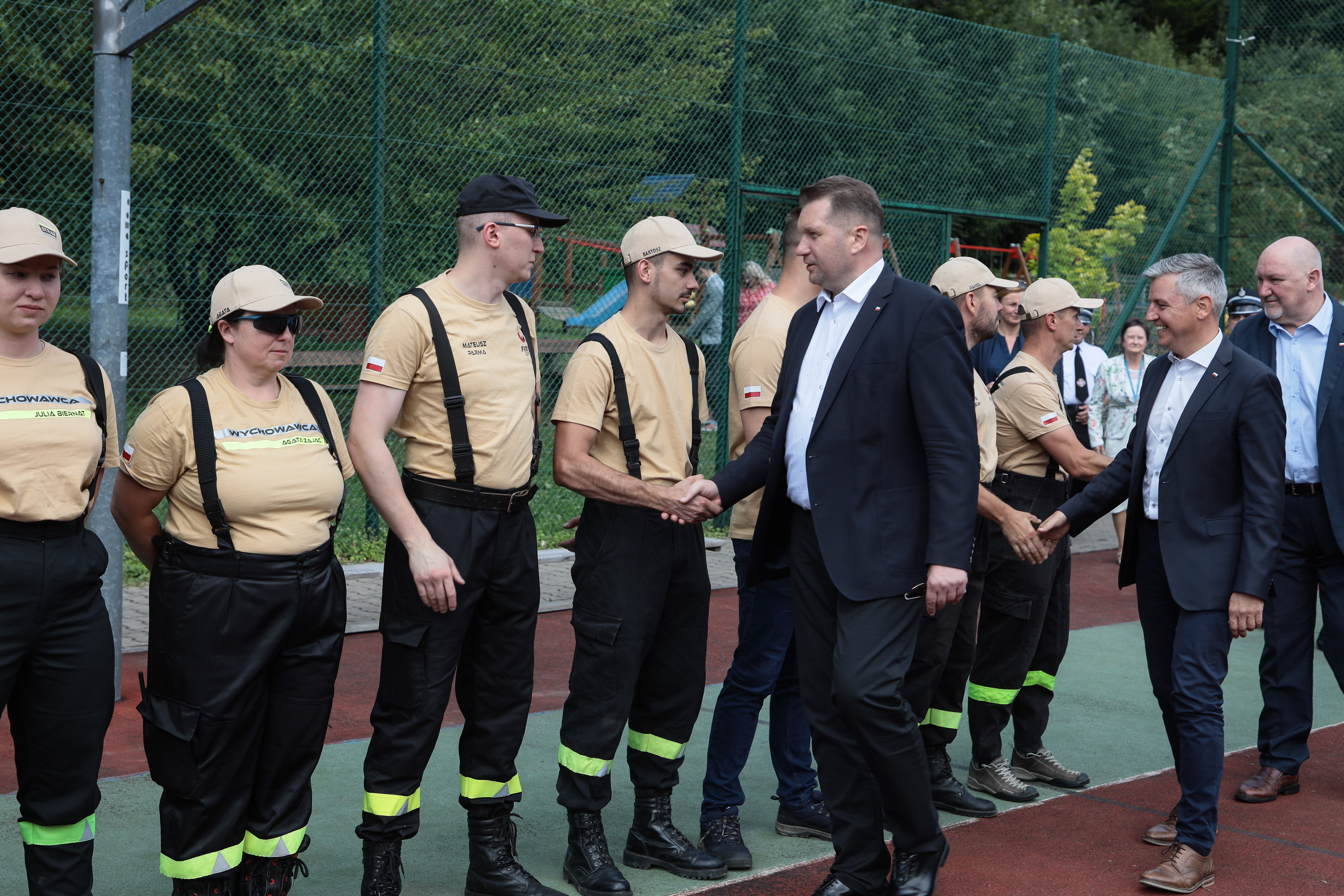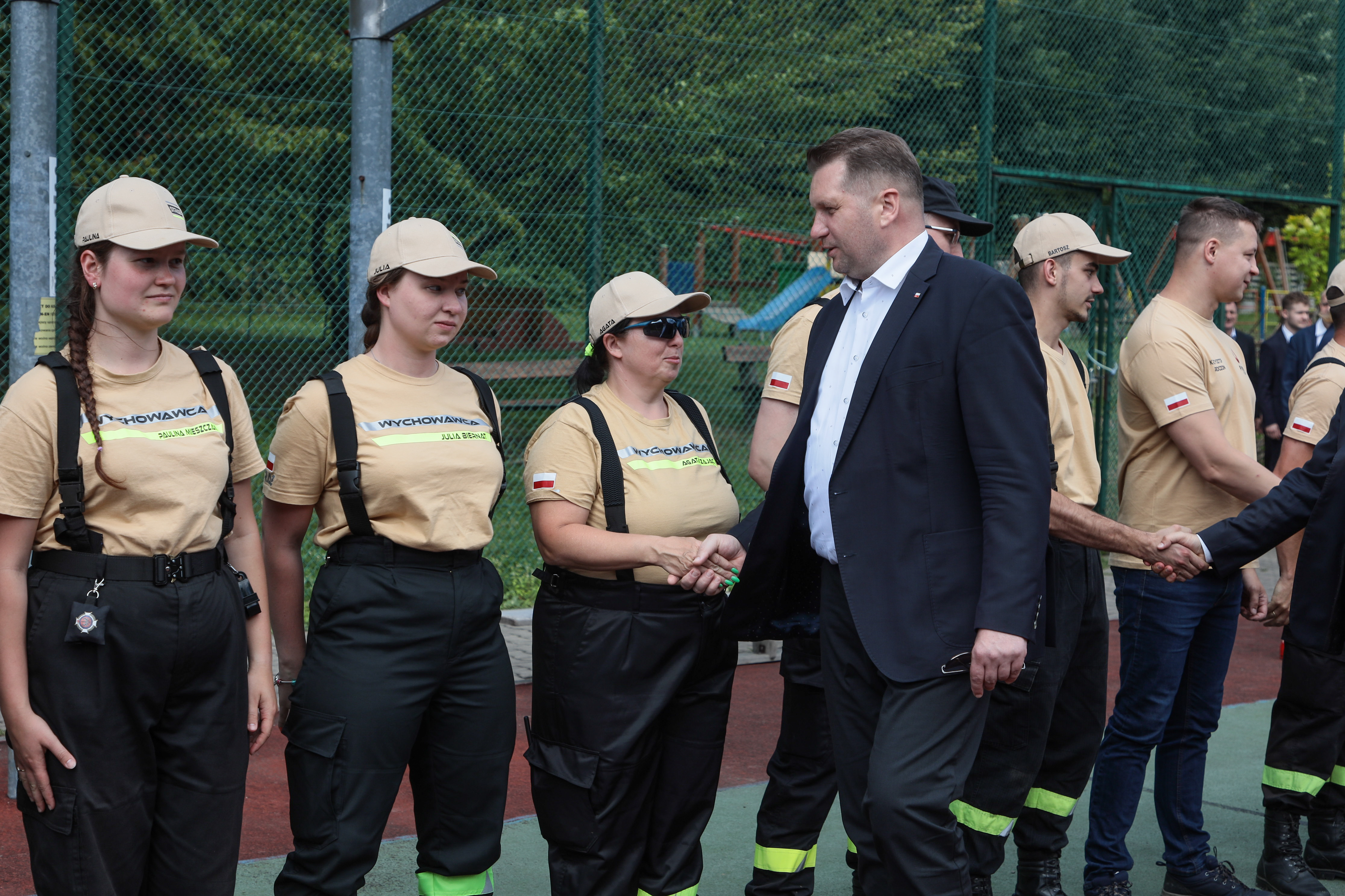 – Spotykamy się w Porąbce dokładnie rok po naszej ostatniej wizycie. W tym czasie powstał zespół, który opracował ogólnopolski program wsparcia Młodzieżowych Drużyn Pożarniczych. Został on przygotowany również przez organizatorów i uczestników tego obozu. Ministerstwo Finansów już zabezpieczyło 150 mln zł i projekt został wpisany do wykazu prac legislacyjnych. Finalizujemy działania i już jesienią ruszamy z naborem i finansowaniem również tego typu obozów – powiedział szef MEiN podczas spotkania z uczestnikami obozu w Porąbce.