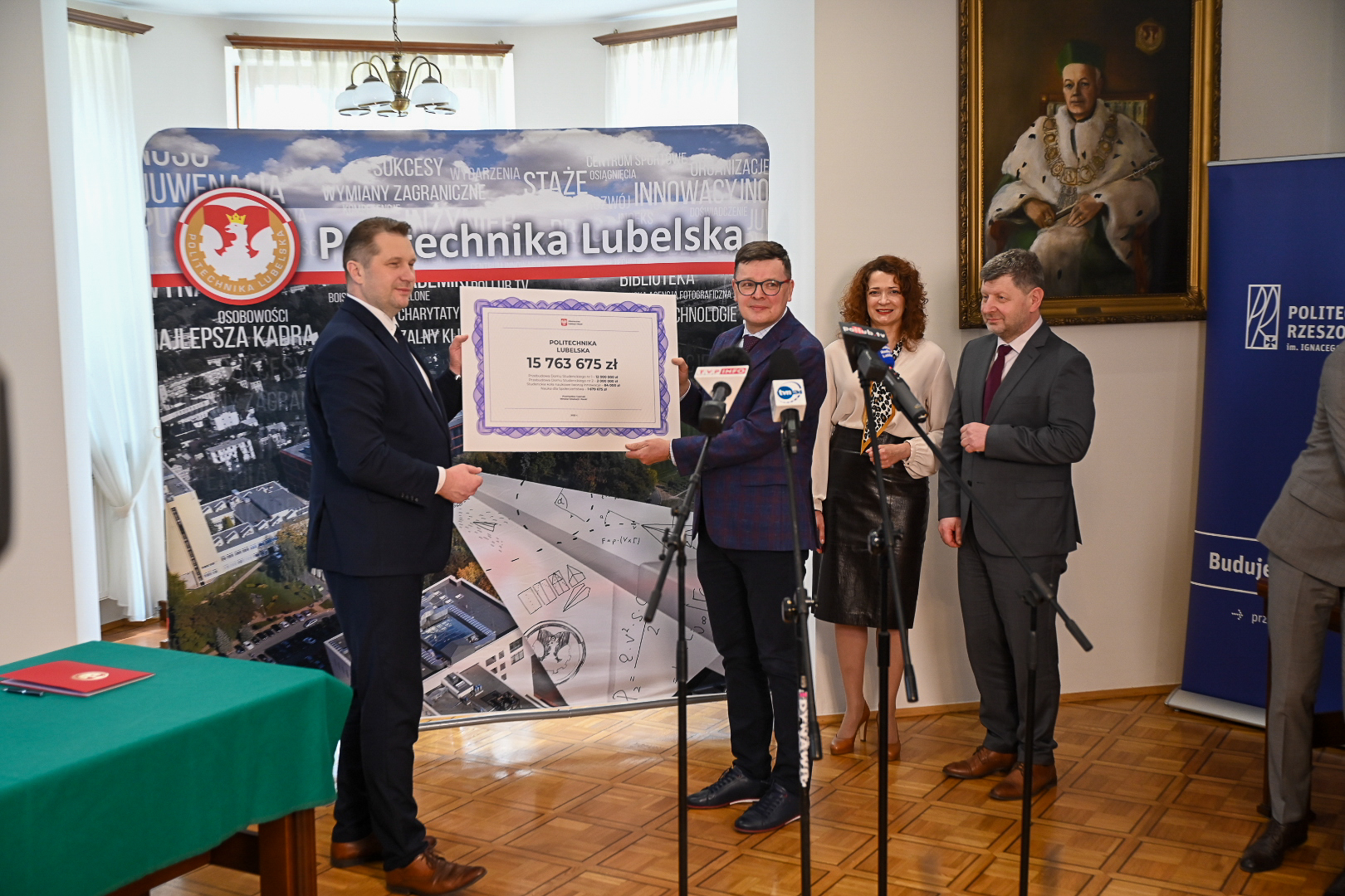 Podczas spotkania w Lublinie minister Przemysław Czarnek wręczył władzom uczelni symboliczne czeki na realizację inwestycji i projektów naukowych.