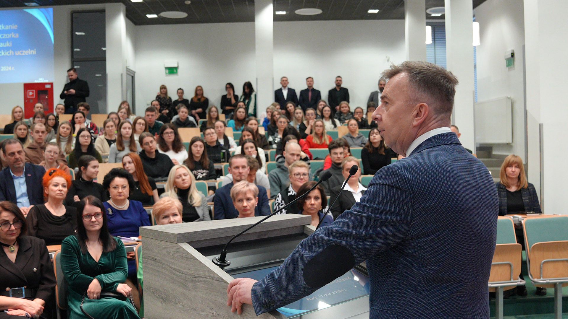 Szef resortu zachęcał również młodych ludzi do angażowania się w działalność samorządów studenckich, by swoją postawą motywować całą społeczność akademicką do rozwoju. – Musicie mieć swoich przedstawicieli, którzy będą reprezentować wasze opinie, przedstawiać poglądy władzom uczelni – mówił minister Dariusz Wieczorek.