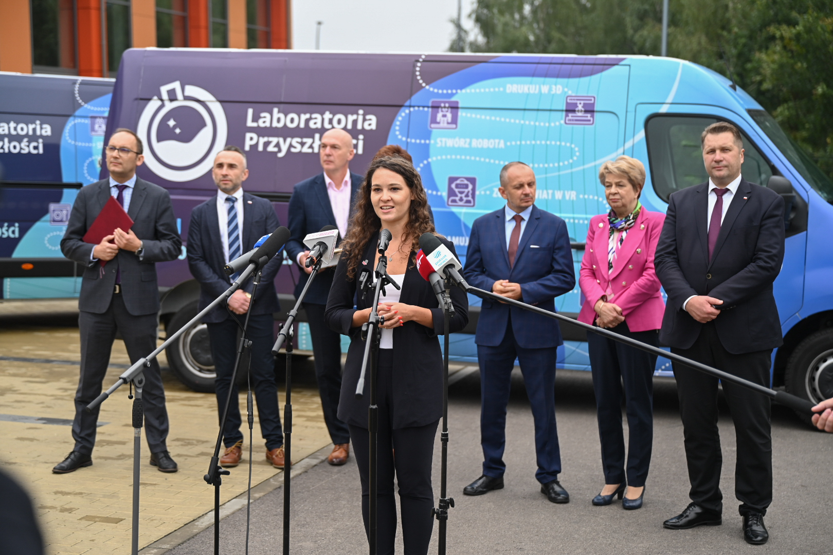 W piątek 9 września w Szkole Podstawowej nr 58 w Lublinie odbyła się konferencja prasowa dotycząca uruchomienia Mobilnych Laboratoriów Przyszłości. Minister Edukacji i Nauki Przemysław Czarnek wraz z Pełnomocnik Ministra Edukacji i Nauki do spraw Transformacji Cyfrowej, Szefową Centrum GovTech Justyną Orłowską przedstawili główne założenia projektu. Ministrowie uczestniczyli również w warsztatach z zakresu edukacji cyfrowej dla uczniów i nauczycieli, prowadzonych przez ekspertów Instytutu Badań Edukacyjnych.