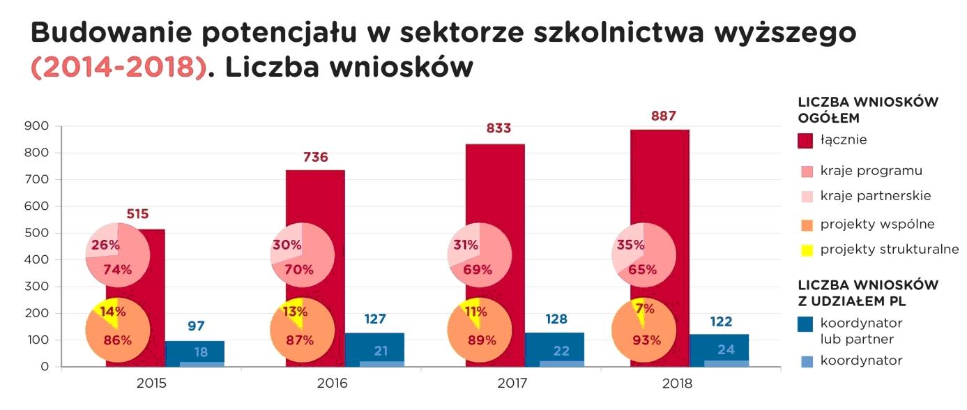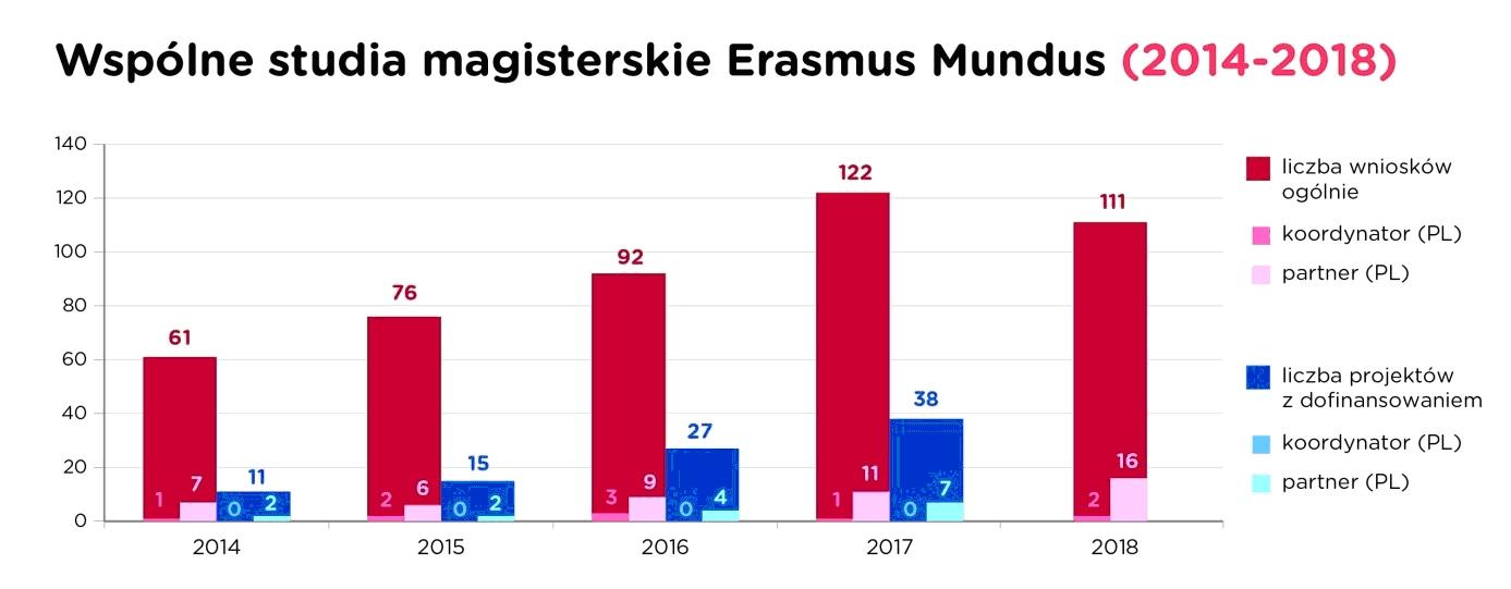 W konkursie wpłynęło do EACEA 111 wniosków z 19 krajów programu, w tym 2 wnioski koordynowane przez polskie instytucje. Ponadto 16 polskich instytucji jest partnerem konsorcjum realizującego wspólne studia, a 21 instytucji pełni rolę partnerów stowarzyszonych.