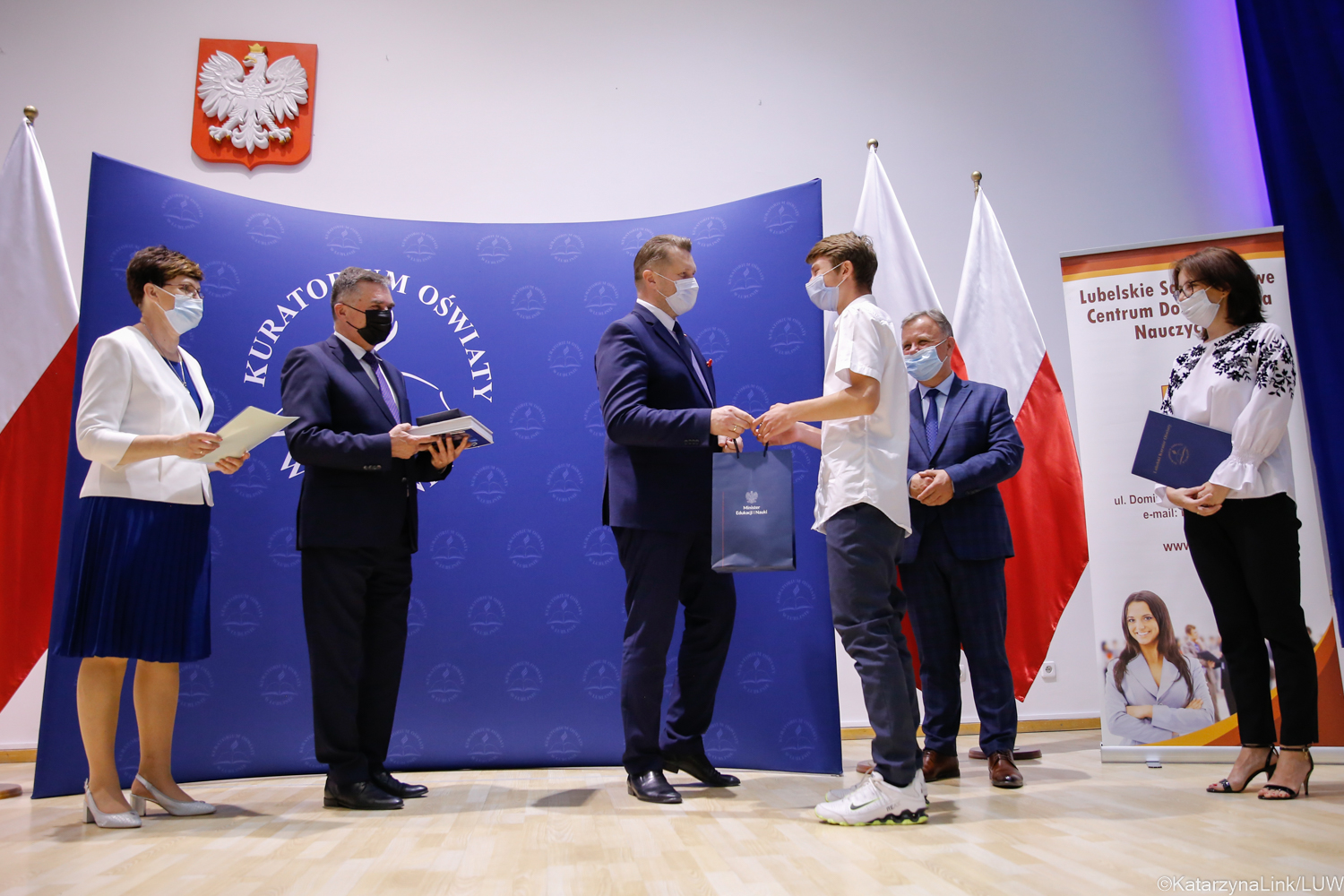 Wielokrotni laureaci konkursów przedmiotowych odebrali nagrody i dyplomy w Lubelskim Urzędzie Wojewódzkim. Z udziałem ministra edukacji i nauki Przemysława Czarnka, wojewody lubelskiego Lecha Sprawki i lubelskiego kuratora oświaty Teresy Misiuk odbyła się uroczystość podsumowania konkursów przedmiotowych dla uczniów szkół podstawowych województwa lubelskiego organizowanych w roku szkolnym 2020/2021. Uhonorowani zostali również dyrektorzy placówek i nauczyciele przygotowujący uczniów do konkursów.
