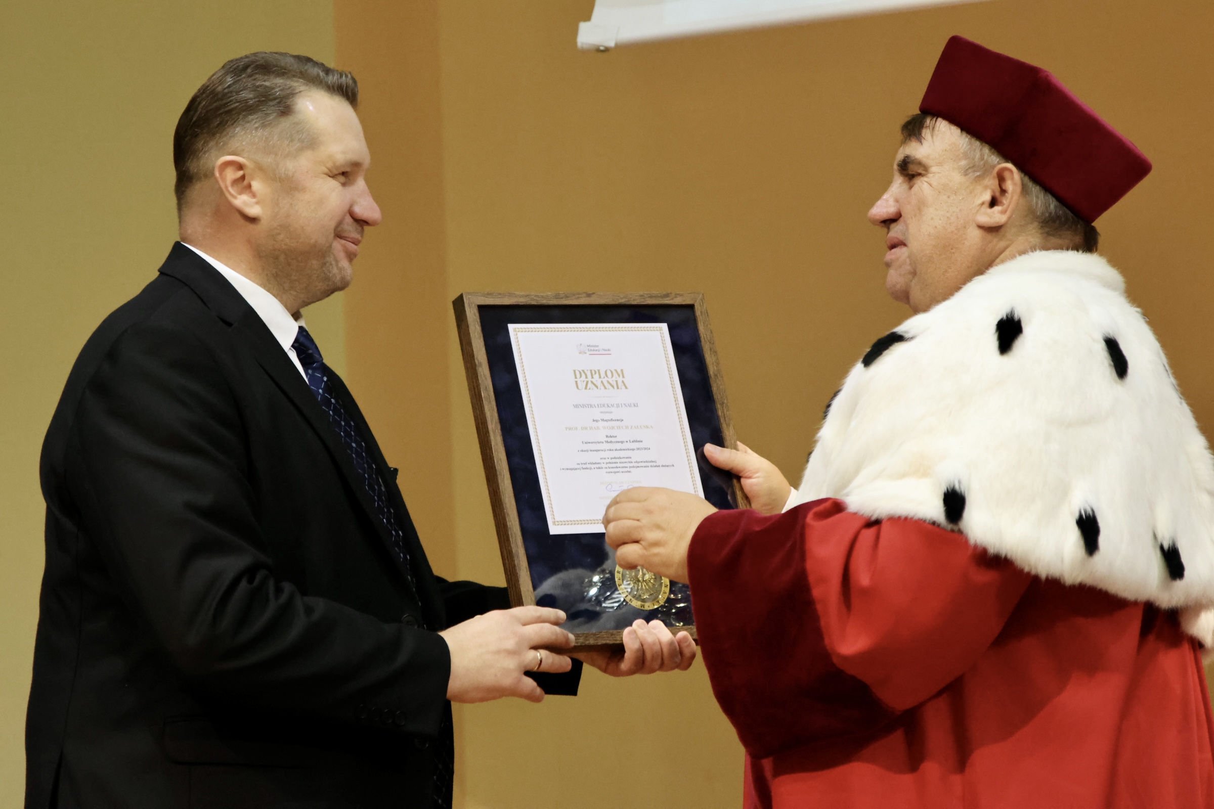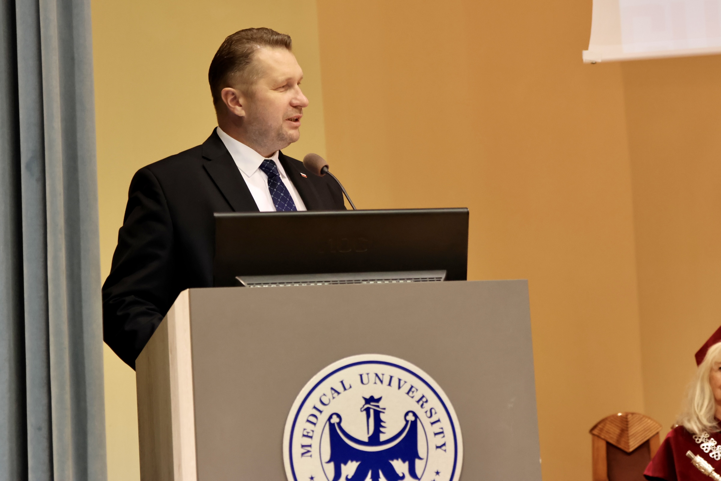 Podczas uroczystości Minister Edukacji i Nauki podziękował władzom uczelni za zaangażowanie w programy „Okobus” i „Dobrze widzieć” i zwrócił jednocześnie uwagę na rozwój i aktywność uczelni w różnych obszarach. – Aktywność Uniwersytetu Medycznego w Lublinie w obszarach takich jak cyfryzacja, wykorzystanie sztucznej inteligencji, diagnostyka pacjentów, a także aktywna współpraca z innymi lubelskimi uczelniami to są rzeczy, z których jesteśmy dumni. To m. in. projekt „Okobus” i program „Dobrze widzieć”. Nie mamy najmniejszych wątpliwości, że Uniwersytet Medyczny w Lublinie to uczelnia medyczna, która rozwija się niezwykle dynamicznie i na tę dynamikę stawiamy – wskazywał szef MEiN.