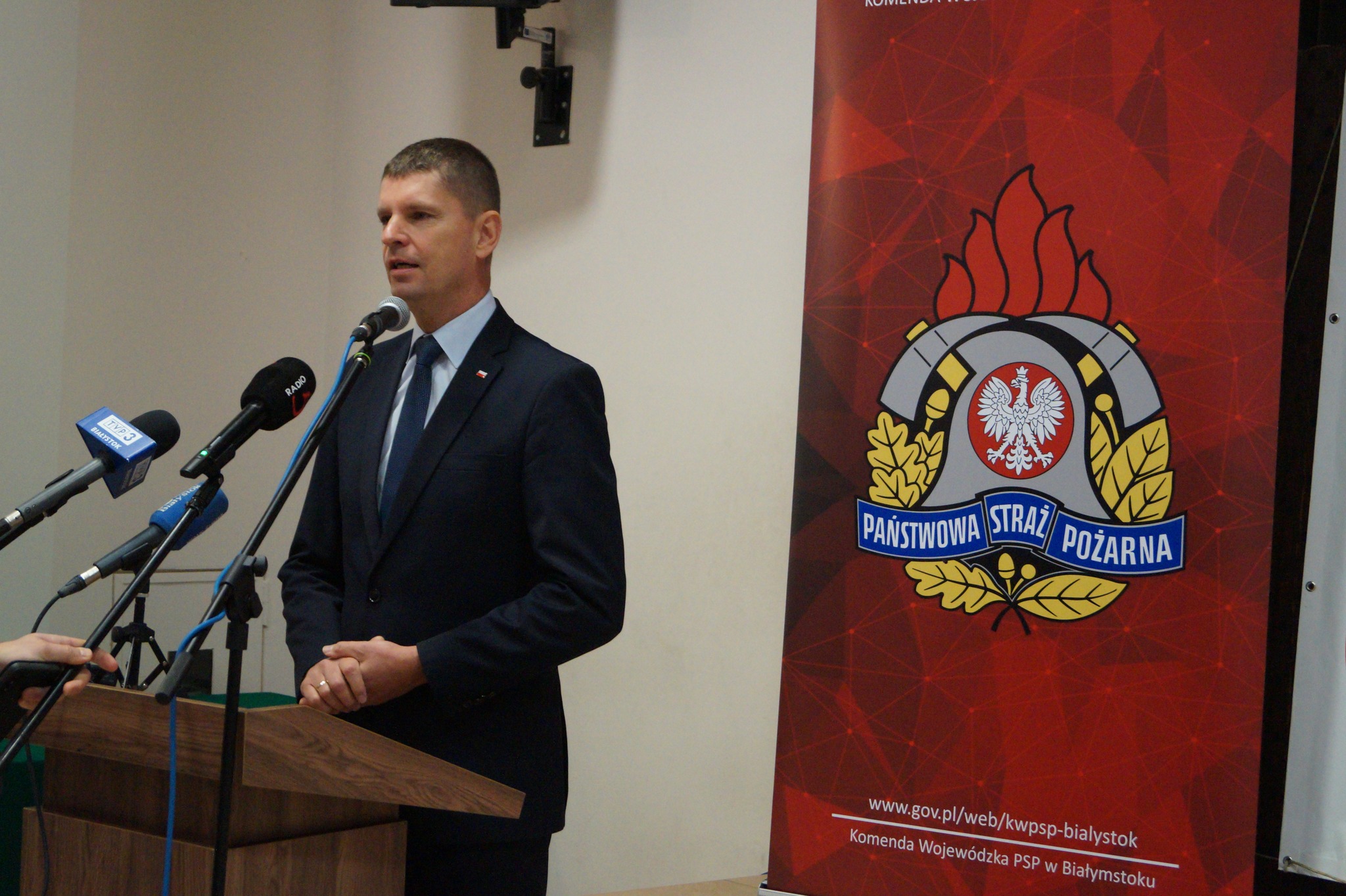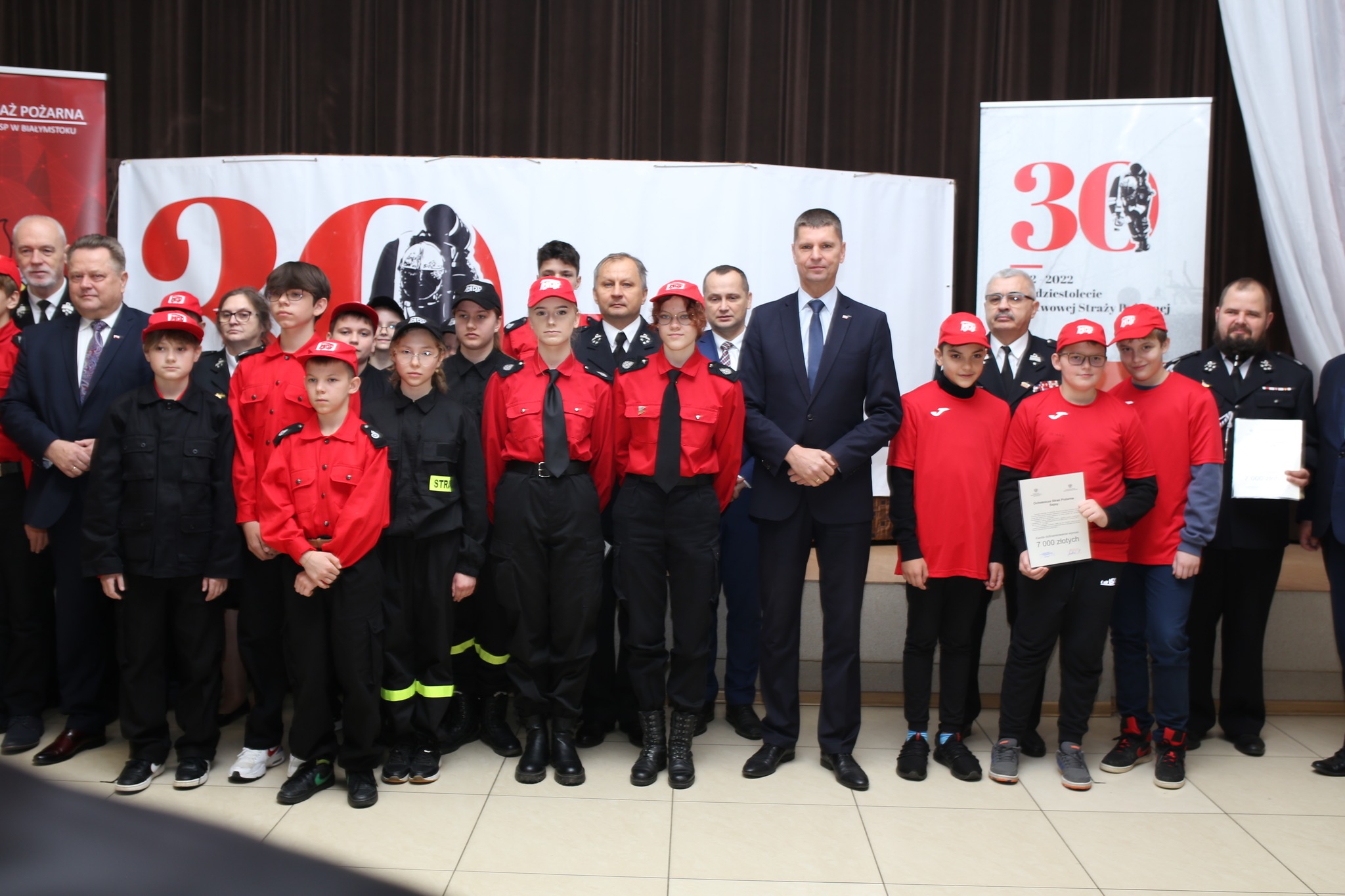 Wiceminister Dariusz Piontkowski wręczył promesy dla Młodzieżowych Drużyn Pożarniczych w województwie podlaskim