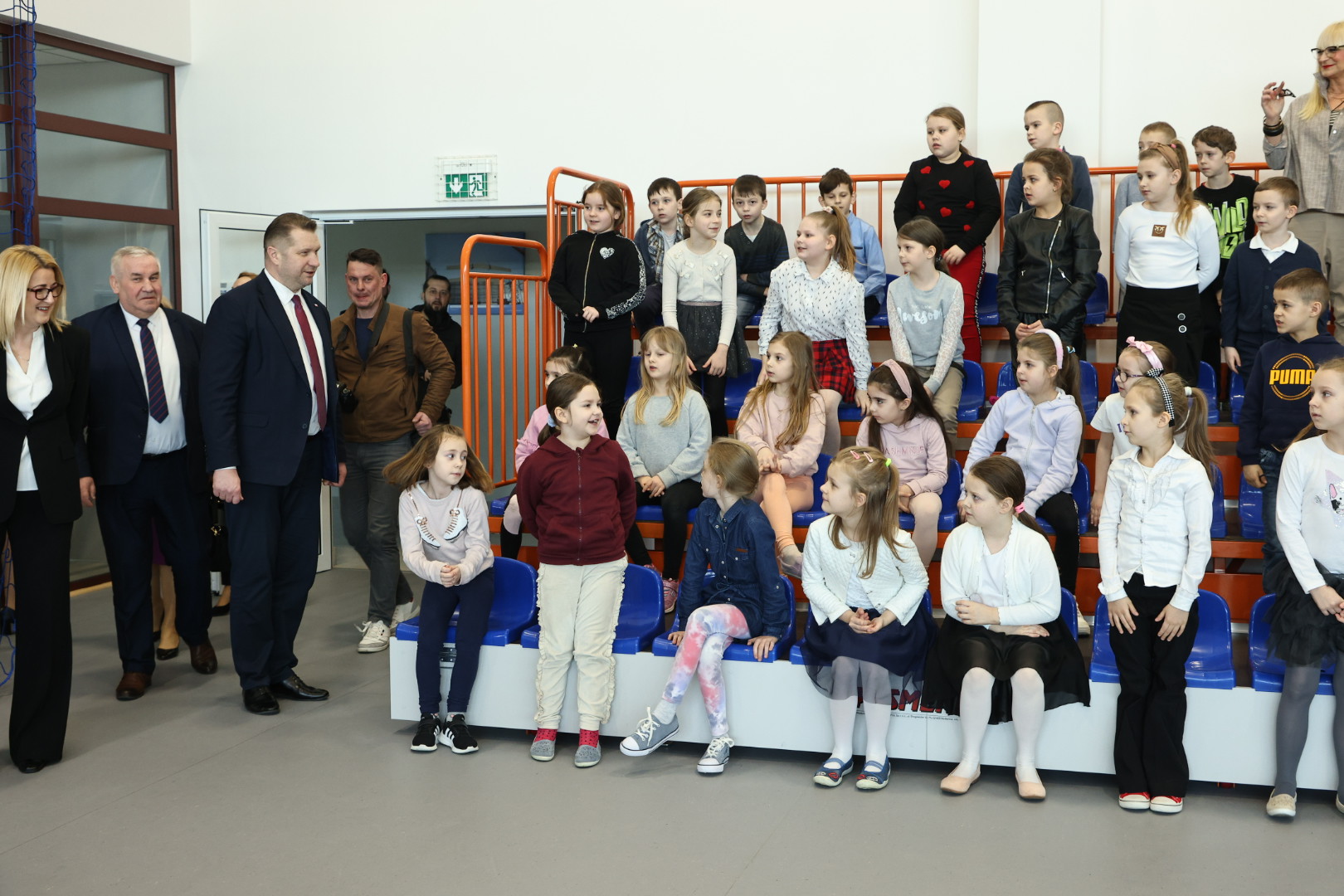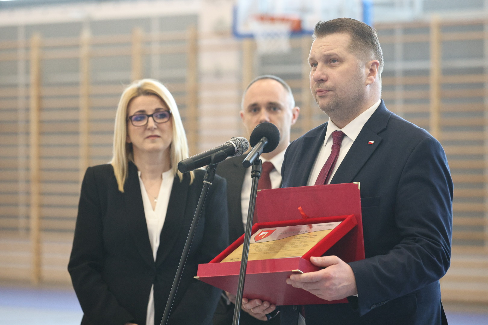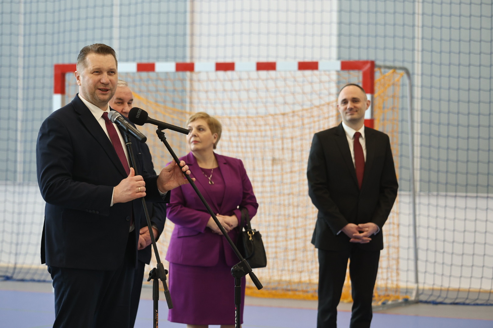 – Porównywaliśmy tę salę gimnastyczną, która służyła przez długie lata waszym starszym kolegom, pewnie również i waszym rodzicom, z tą piękną halą, świetlicą i stołówką. To są rzeczywiście imponujące warunki, w których się uczycie – powiedział minister Przemysław Czarnek, zwracając się do uczniów szkoły w Stawiskach.