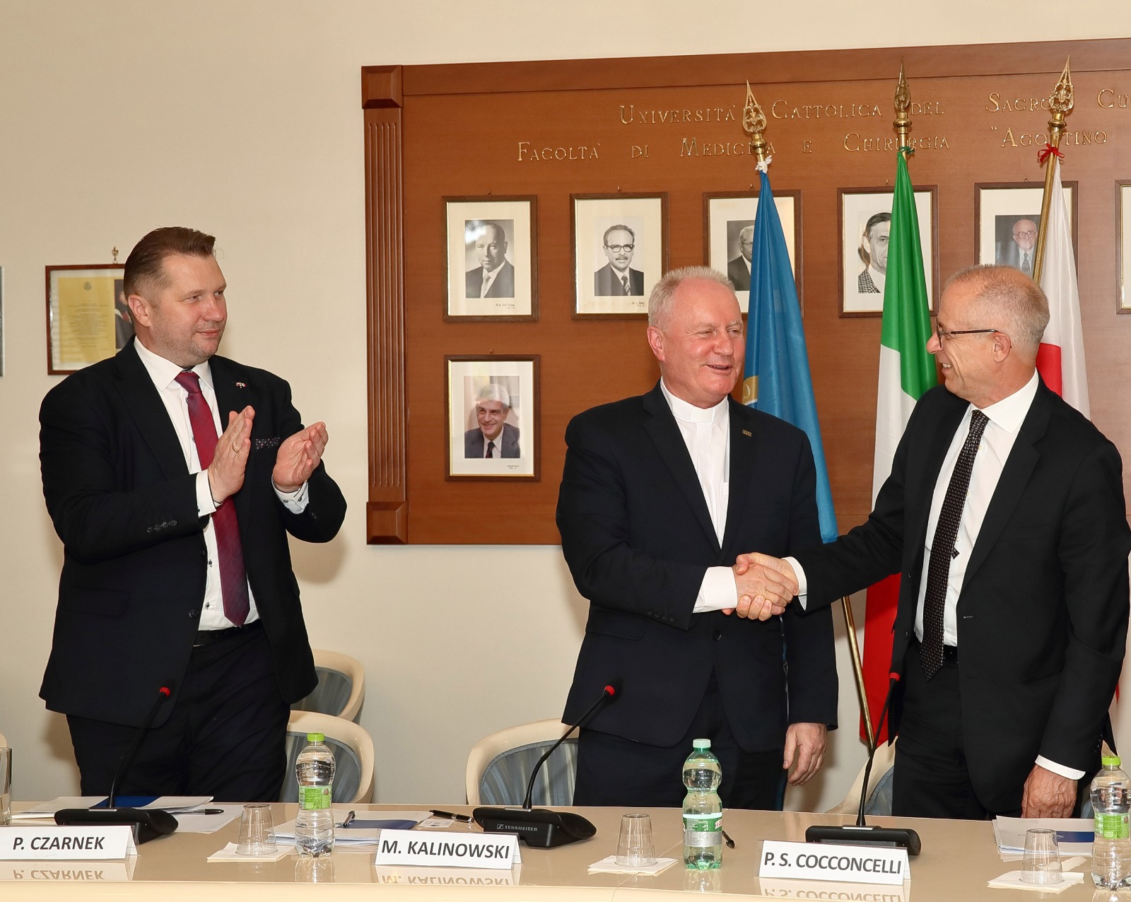 W spotkaniu w Poliklinice Gemelli uczestniczyli prof. Pietro Sandro Cocconcelli, Prorektor ds. koordynacji projektów z zakresu umiędzynarodowienia, prof. Rocco Bellantone, Dziekan Wydziału Medycyny, dr Lorenzo Maria Cecchi, Dyrektor Filii w Rzymie, Rektor KUL ks. prof. dr hab. Mirosław Kalinowski oraz Prezes Agencji Badań Medycznych, Pełnomocnik Prezesa Rady Ministrów do spraw rozwoju sektora biotechnologii i niezależności Polski w zakresie produktów krwiopochodnych dr hab. n. med. Radosław Sierpiński.