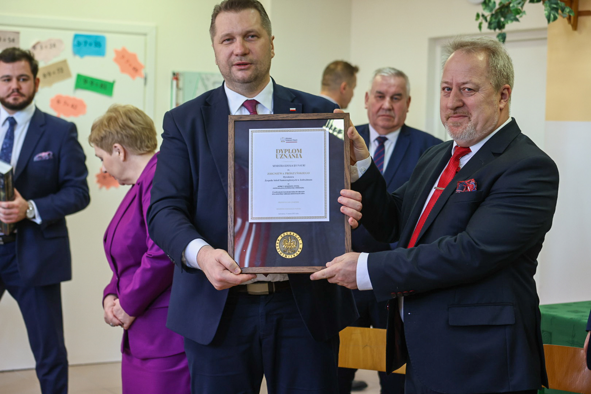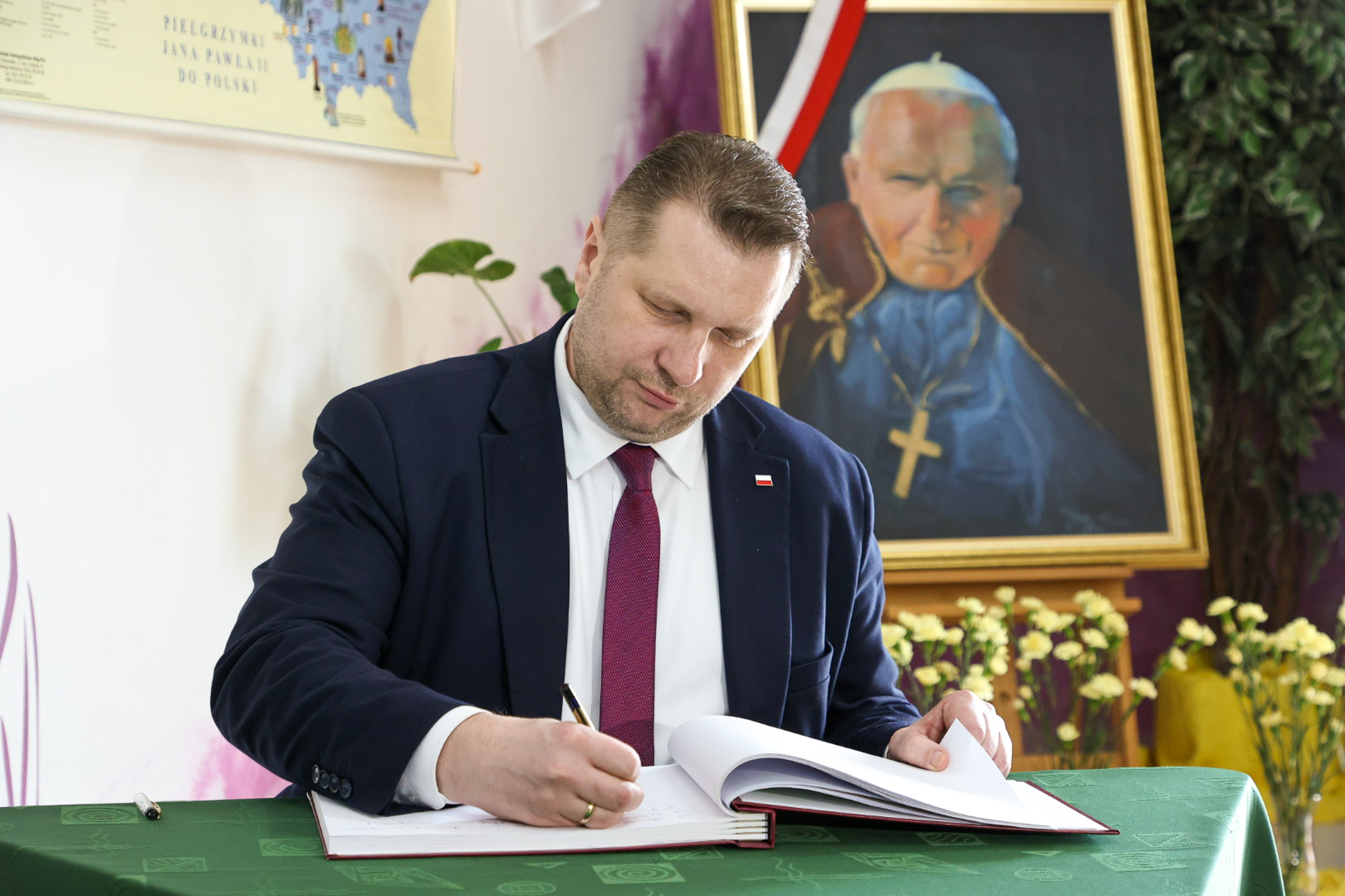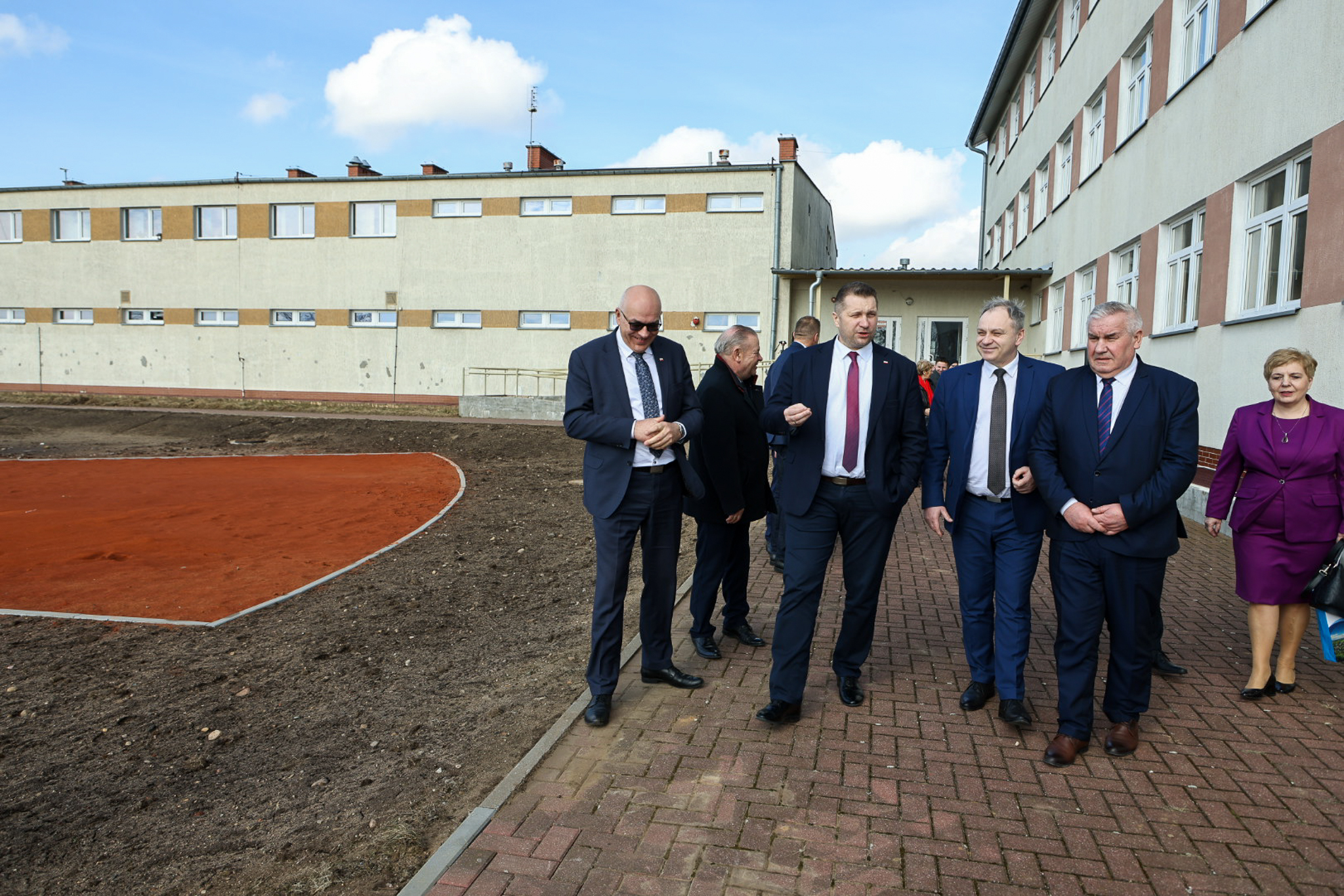 Minister Przemysław Czarnek odwiedził Zespół Szkół Samorządowych w Jedwabnem, gdzie rozpoczęła się budowa kompleksu lekkoatletycznego. Przedsięwzięcie otrzymało dofinansowanie z programu „Polski Ład”. Wysokość wsparcia to ponad 3 mln zł, co stanowi 90 proc. całkowitej kwoty inwestycji.