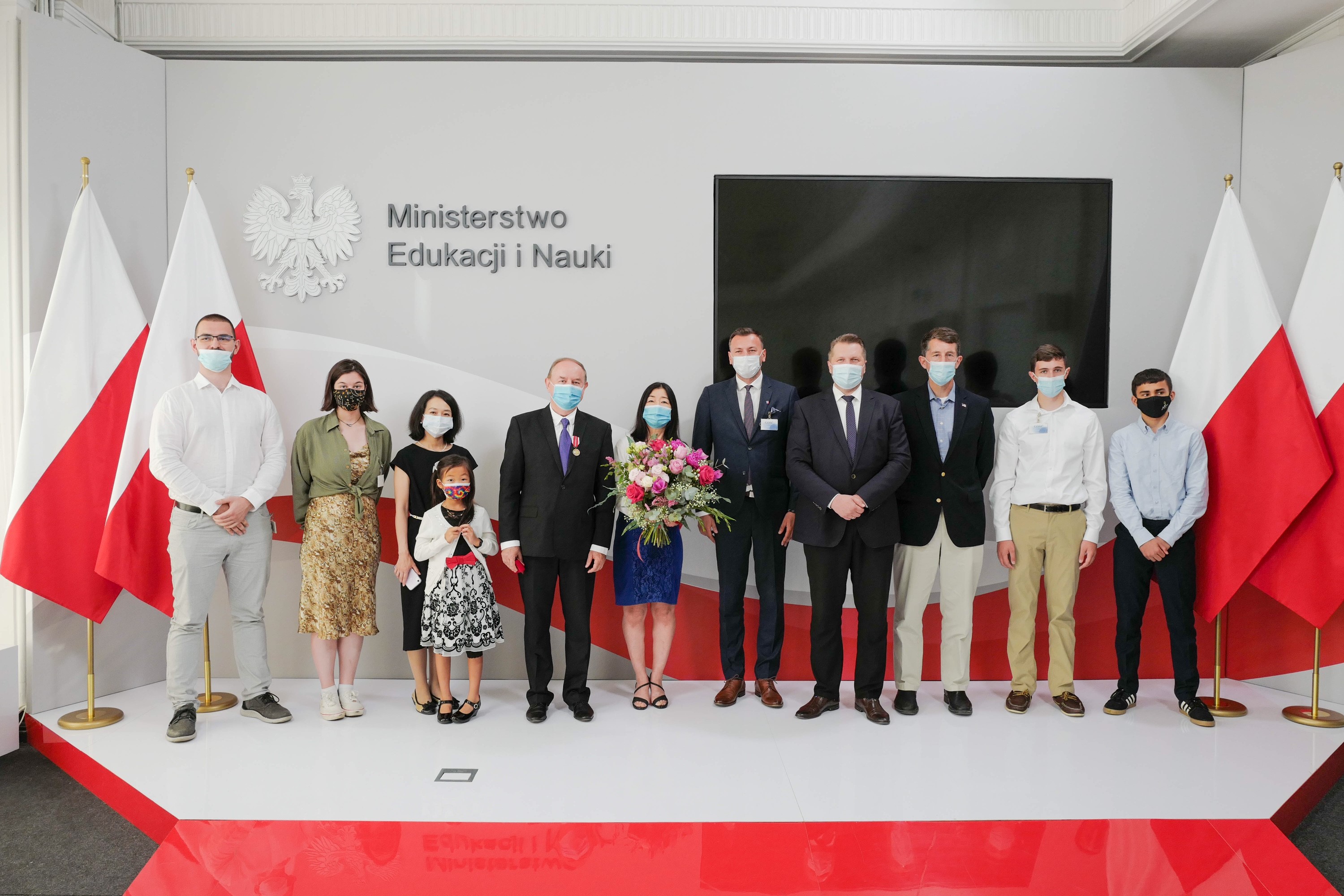 Dziś, 22 lipca br. Minister Edukacji i Nauki Przemysław Czarnek wręczył medale Komisji Edukacji Narodowej za szczególne zasługi dla rozwoju oświaty i wychowania Pani Tomoko Mack- Brzozowski oraz Panu Kazimierzowi Brzozowskiemu. W uroczystości uczestniczyli także Prokurator Federalny miasta Detroit w stanie Michigan Pan David Gardey oraz Burmistrz Nałęczowa Pan Wiesław Pardyka.