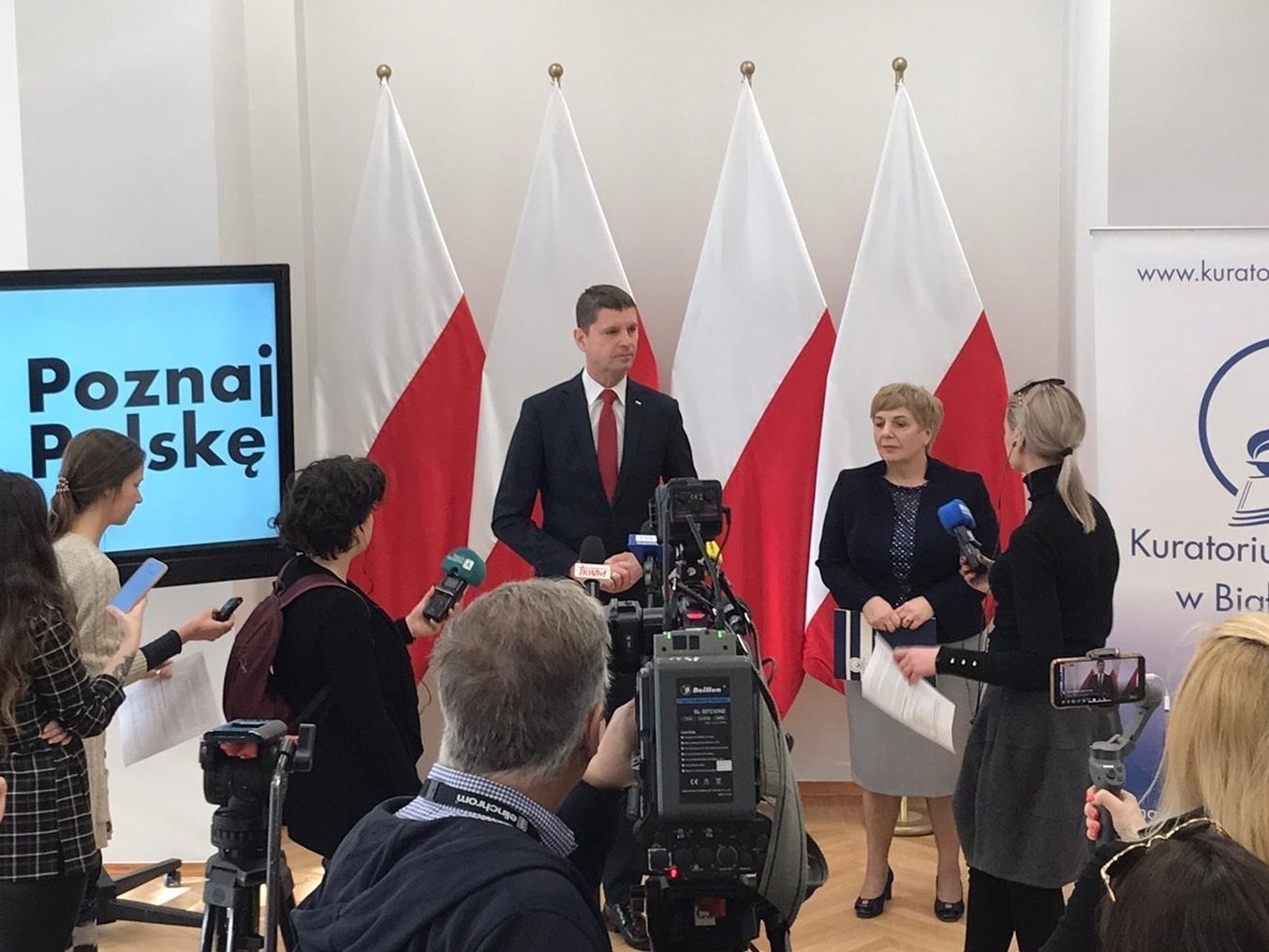 – Chcemy, aby uczniowie poznawali nasz kraj, poznawali jego historię, kulturę, zabytki, ale także miejsca chronionego krajobrazu, miejsca atrakcyjne przyrodniczo, związane z wielkimi Polakami, historią najnowszą, historią polskiego państwa podziemnego – mówił wiceminister Dariusz Piontkowski podczas konferencji.