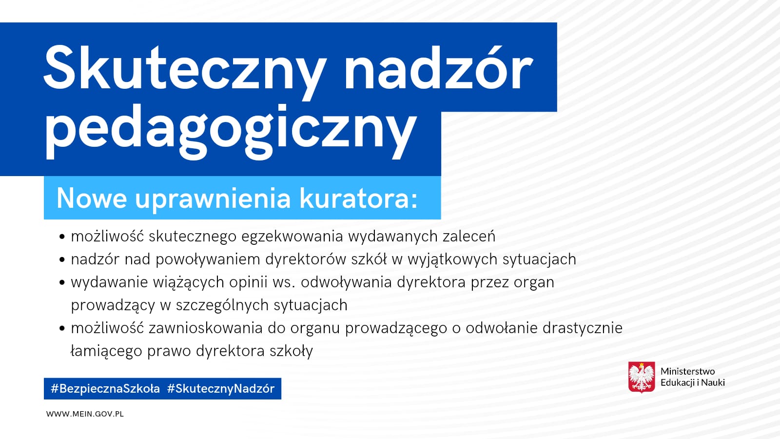 W nowelizacji ustawy został określony sposób postępowania w sytuacji, w której dyrektor szkoły lub placówki uchyla się lub nie realizuje zaleceń wydanych przez kuratora oświaty. Kurator będzie miał możliwość wezwania dyrektora szkoły lub placówki do wyjaśnienia przyczyn niezrealizowania zaleceń. Jeśli dyrektor nadal nie będzie realizował zaleceń, kurator będzie mógł wystąpić do organu prowadzącego szkołę lub placówkę z wnioskiem o odwołanie dyrektora.