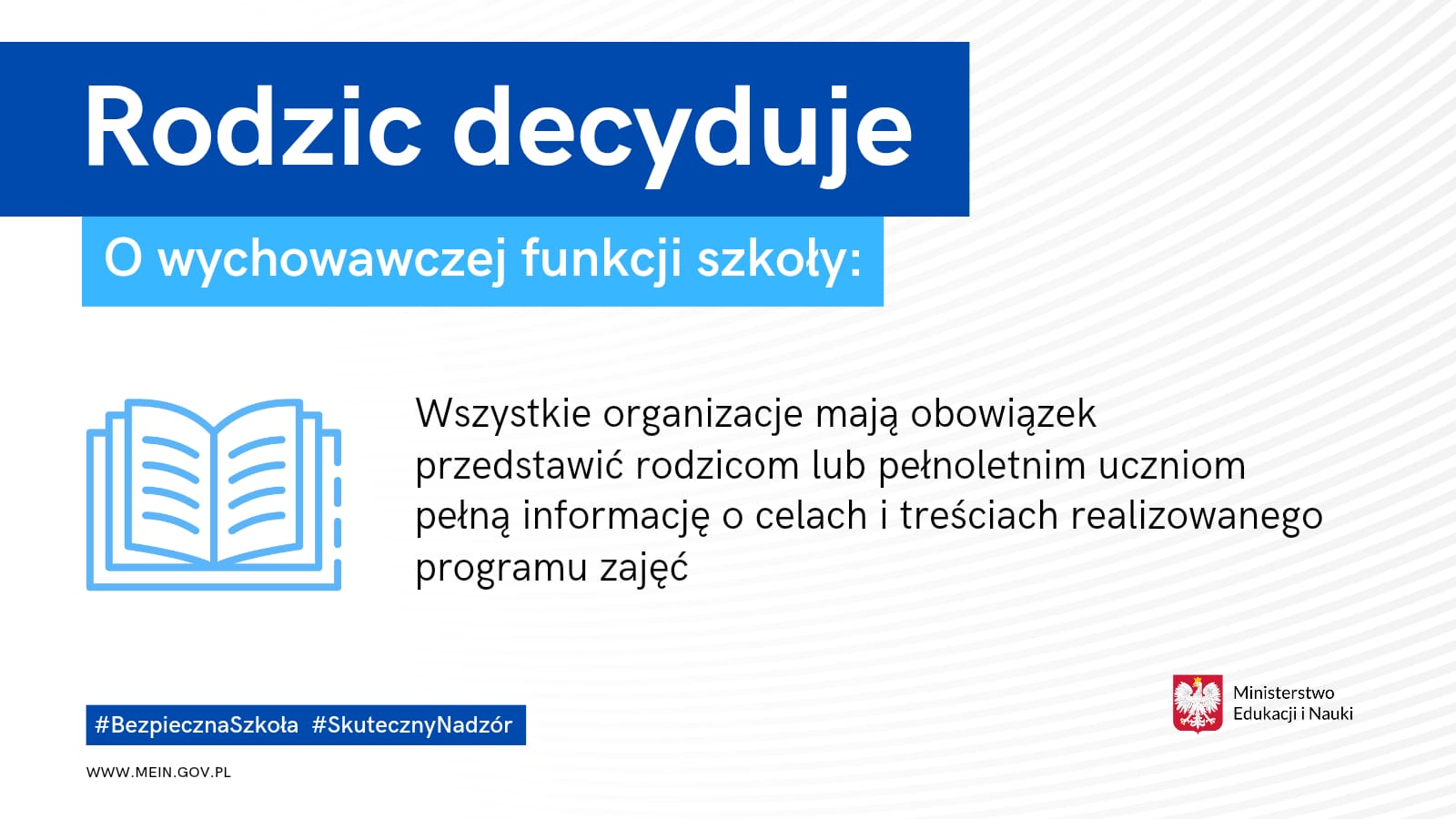W czwartek, 13 stycznia br. Sejm RP uchwalił nowelizację ustawy – Prawo oświatowe. Zmienione będą zasady funkcjonowania organizacji pozarządowych na terenie szkół i placówek oświatowych. W ustawie pojawił się również przepis wzmacniający rolę rodzica w szkole, zgodnie z którym rodzice będą w pełni decydowali o udziale dziecka w zajęciach dodatkowych. Kurator oświaty zyska nowe uprawnienia, pozwoli to na skuteczny nadzór pedagogiczny.