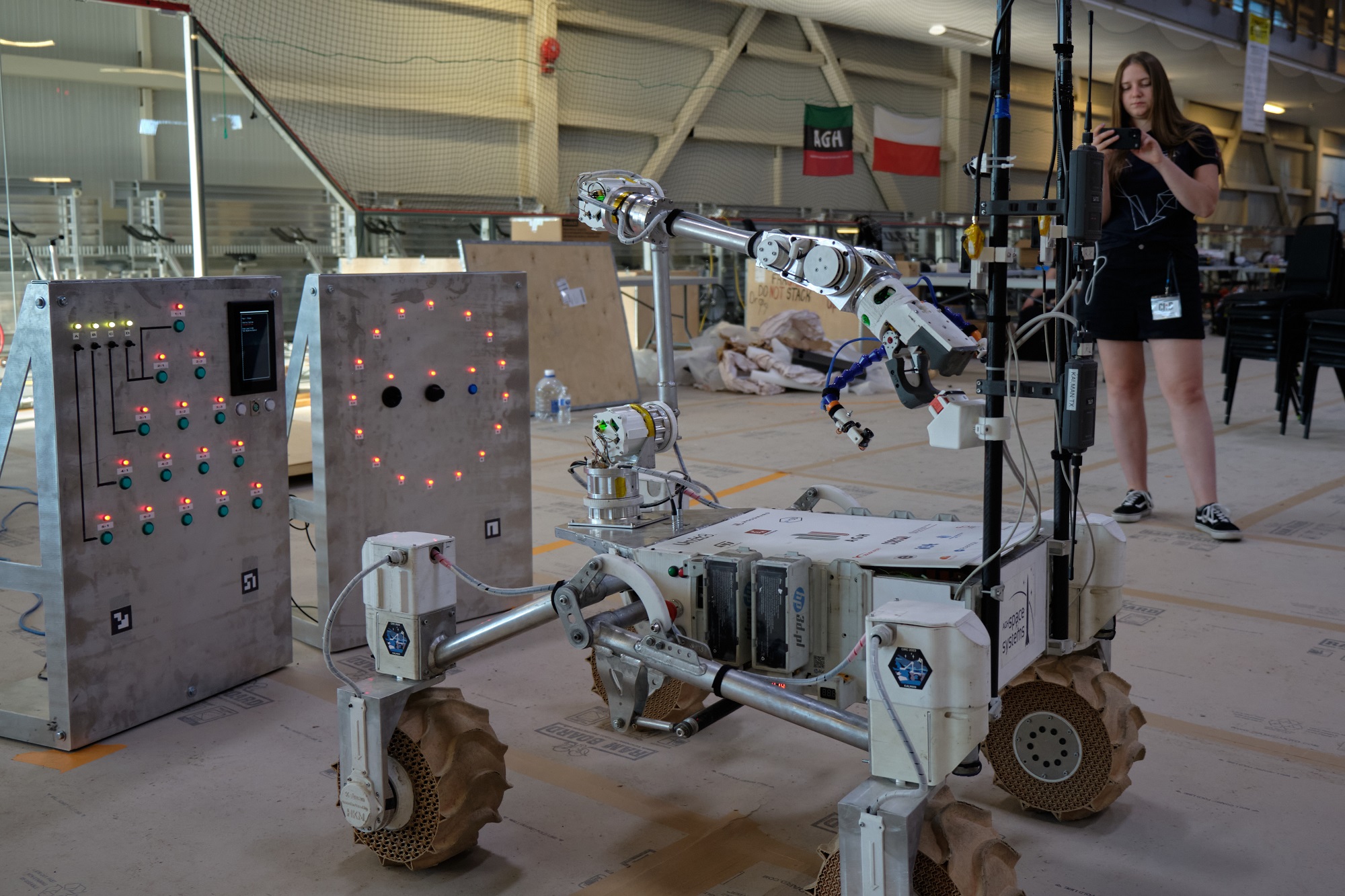 Po zakończeniu ostatniej misji Arm Dexterity, która sprawdzała sprawność łazika w obsłudze panelu sterowania reaktora, okazało się, że zespół AGH Space System niemal całkowicie znokautował rywali. Nasza drużyna okazała się najlepsza w aż 4 z 5 misji – Search & Rescue, Traversal+, Water Redirection oraz Arm Dexterity. W zadaniu Water Redirection studenci z AGH zbliżyli się do perfekcji, zdobywając 148 na 150 punktów.