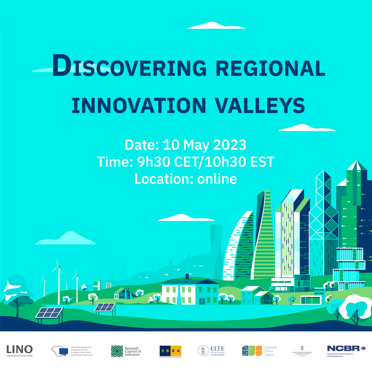 Lithuanian RDI Liaison Office in Brussels (LINO), the NCBR Office in Brussels – Business & Science Poland, the Slovenian Business & Research Association, the European Office of Cyprus – Brussels Office, Eötvös Loránd University and the National Research, Development, and Innovation Office in Hungary have the pleasure to invite you to the virtual event “Discovering regional innovation valleys” which will take place on Wednesday 10 May at 9.30 am (CEST).