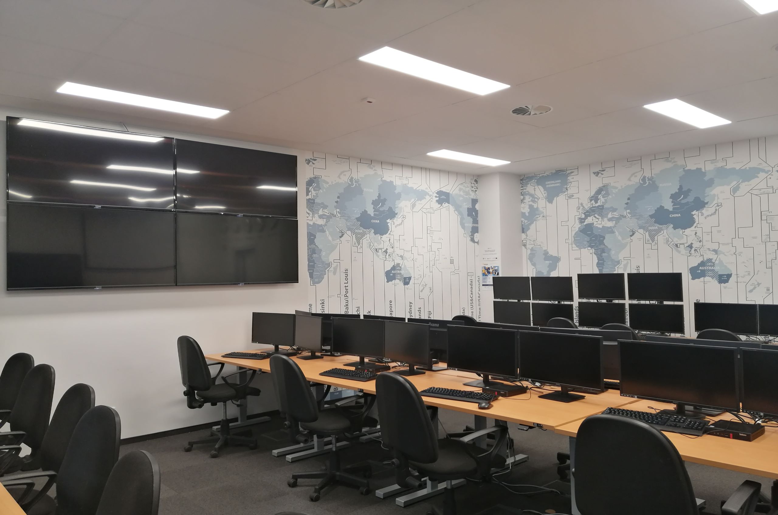 - creation of 4 teaching rooms for practical training (in the fields of study: Administration, Finance and Accounting, Management, Political Science) in an environment close to the real one, i.e., a court trial simulation room, a simulation room for public speeches and press conferences, a simulation room for financial and banking transactions and an interactive room