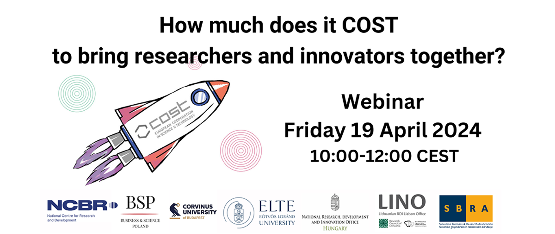 Lithuanian RDI Liaison Office in Brussels (LINO), the NCBR Office in Brussels – Business & Science Poland, the Slovenian Business & Research Association, Eötvös Loránd University, Corvinus University of Budapest and the National Research, Development, and Innovation Office in Hungary have the pleasure to invite you to the virtual webinar on how much does it COST to bring researchers and innovators together which take place on Friday 19 April at 10.00.