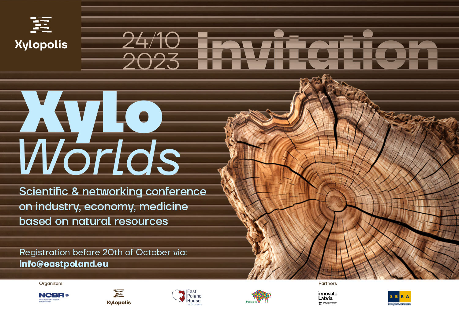 The National Centre for Research and Development - NCBR Office in Brussels, the East Poland House in Brussels, the Marshal's Office of the Podlaskie Voivodeship and the XYLOPOLIS Centre for Wood Art in partnership with Latvian Office for Innovation & Technology in Brussels and Slovenian Business & Research Association would like to invite you a conference dedicated to the trends and prospects for the use of wood in the world: XYLO-WORLDS: industry, economy and medicine based on natural resources.