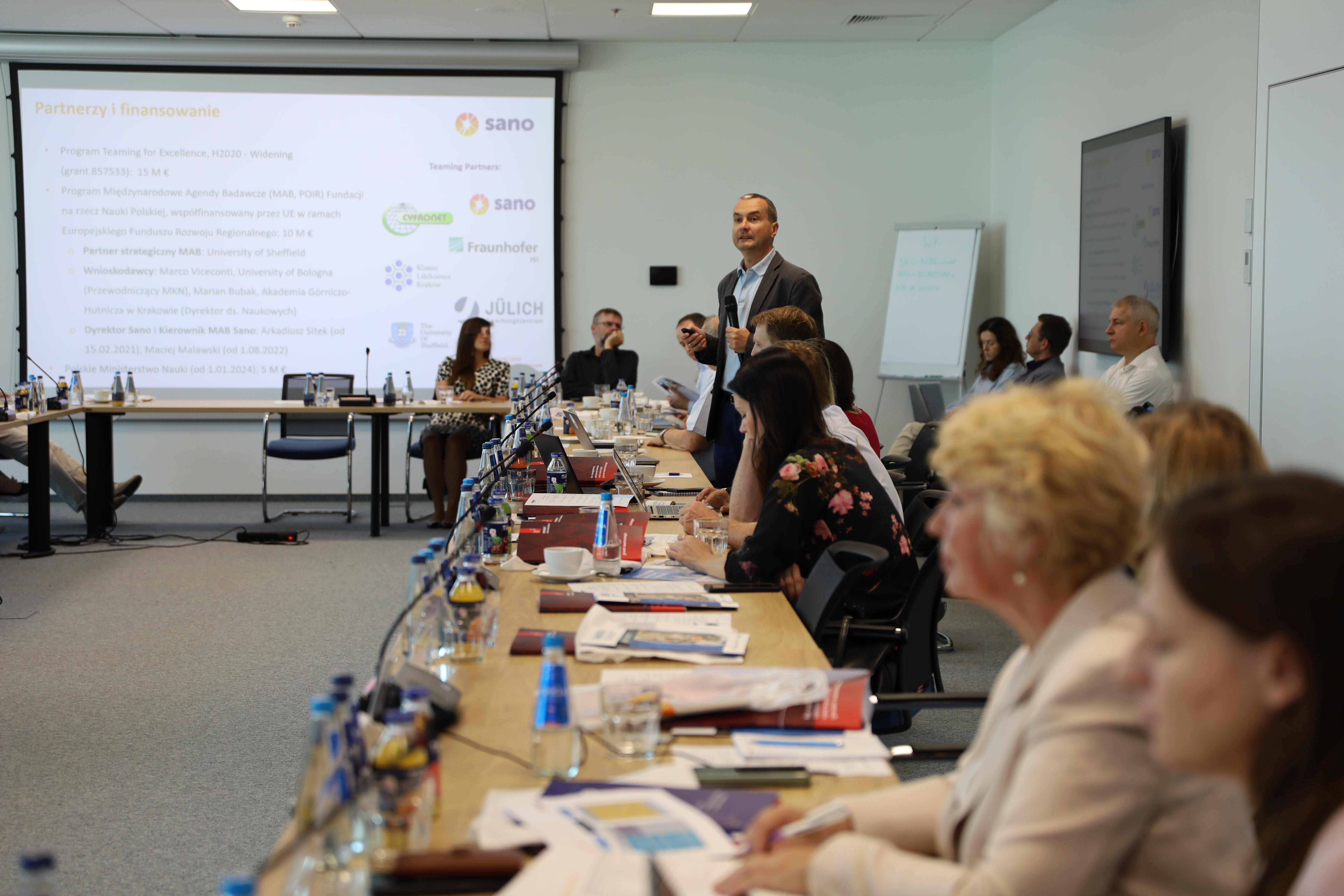 – Sano rozwija innowacje, które łączą światowe trendy o niezwykłej skali oddziaływania na społeczeństwo. Koncentrujemy się na prowadzeniu badań nad technologiami obliczeniowymi, które mają służyć człowiekowi, poprawiać zdrowie pacjentów i ułatwiać pracę lekarzy. Ważna jest dla nas także translacja, czyli przełożenie rezultatów badań naukowych do praktyki przemysłowej, w naszym przypadku – klinicznej. Szukamy więc potwierdzenia naszych koncepcji i rozwiązań w środowiskach docelowych, czyli szpitalach, placówkach diagnostycznych i gabinetach lekarskich – powiedział podczas spotkania dyrektor Sano dr hab. inż. Maciej Malawski, prof. AGH.