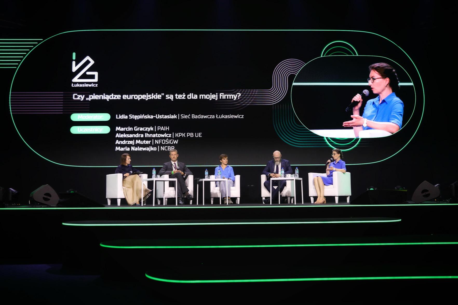 W jaki sposób rozpocząć swoją przygodę z Funduszami Europejskimi? Gdzie szukać potencjalnych narzędzi wsparcia innowacyjności? Czy aplikowanie o środki dostępne jest dla każdego? – te i inne pytania stawiała Lidia Stępińska-Ustasiak z Sieci Badawczej Łukasiewicz uczestnikom panelu „Czy >>pieniądze europejskie<< są też dla mojej firmy?”. W dyskusji wzięły udział m.in. dwie ekspertki z Narodowego Centrum Badań i Rozwoju: Maria Nalewajko, która kieruje pracą Punktu Informacyjnego NCBR, oraz Aleksandra Ihnatowicz z Działu Krajowego Punktu Kontaktowego.