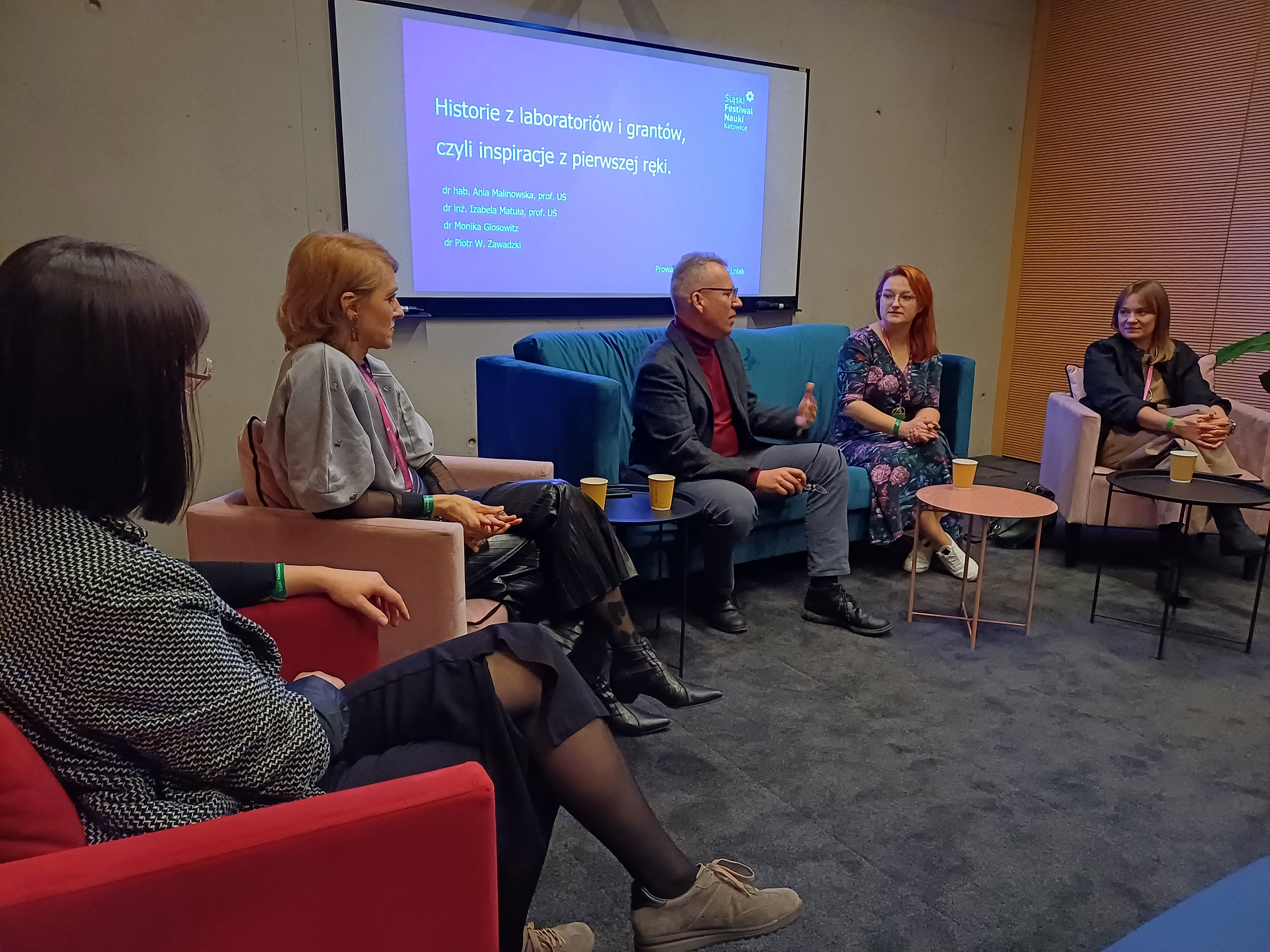 Ostatniego dnia wydarzenia wkroczyliśmy do strefy Kulisy Nauki. Dr Piotr Zawadzki wziął udział w arcyciekawej dyskusji panelowej pt. „Historie z laboratoriów i grantów, czyli inspiracje z pierwszej ręki”.