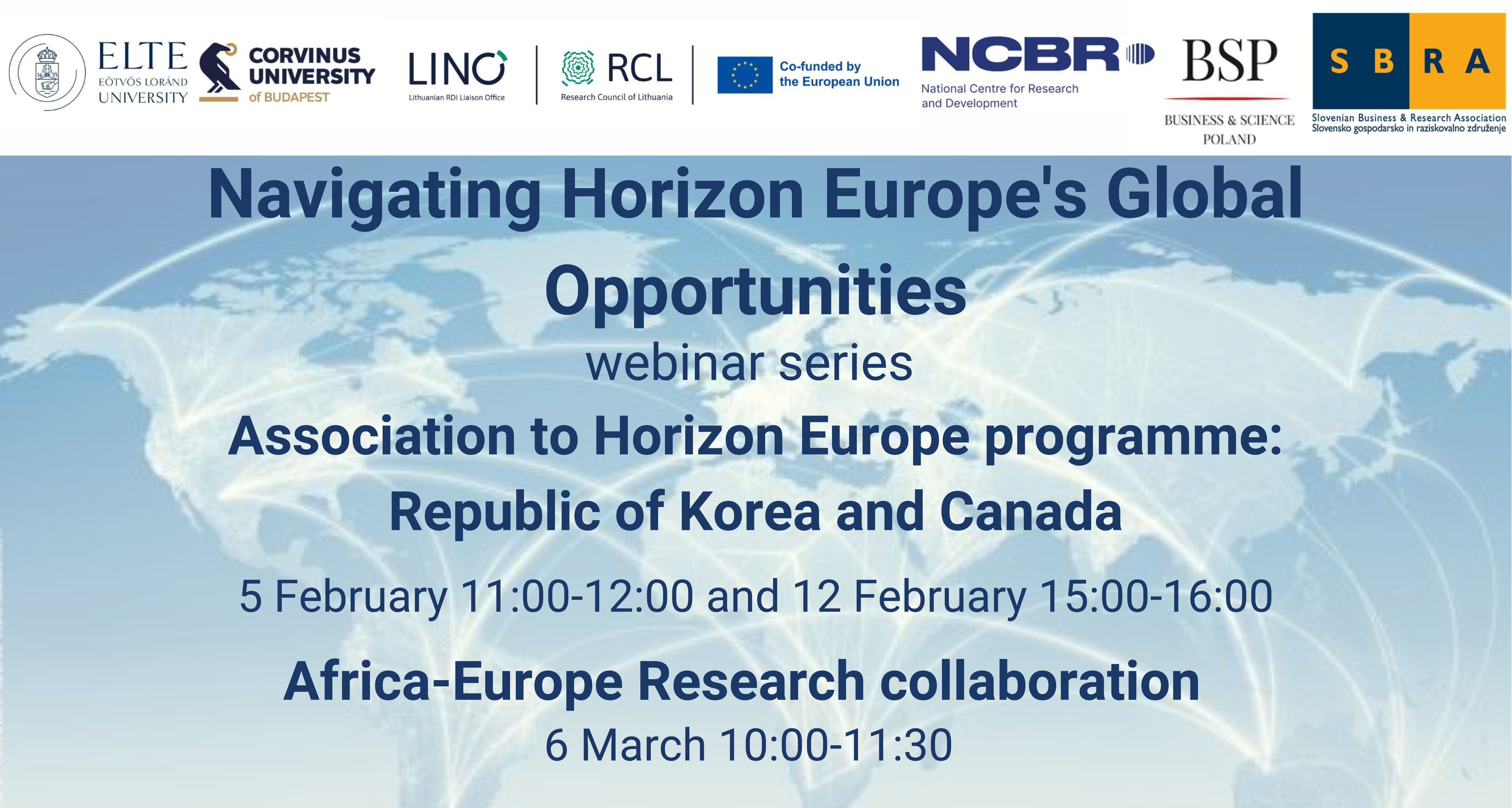 Biuro NCBR w Brukseli we współpracy z biurami partnerskimi LINO Lithuanian RDI Liaison Office in Brussels, SBRA Slovenian Business & Research Association, węgierskimi uniwersytetami Eötvös Loránd i Uniwersytetem Korwina w Budapeszcie zaprasza do wzięcia udziału w miniserii webinarów poświęconych globalnej współpracy badawczej między Europą i – kolejno Koreą Południową, Kanadą i Afryką – w ramach programu Horyzont Europa, który odbędzie się 5 lutego w godz. 11.00-12.00 (CET).