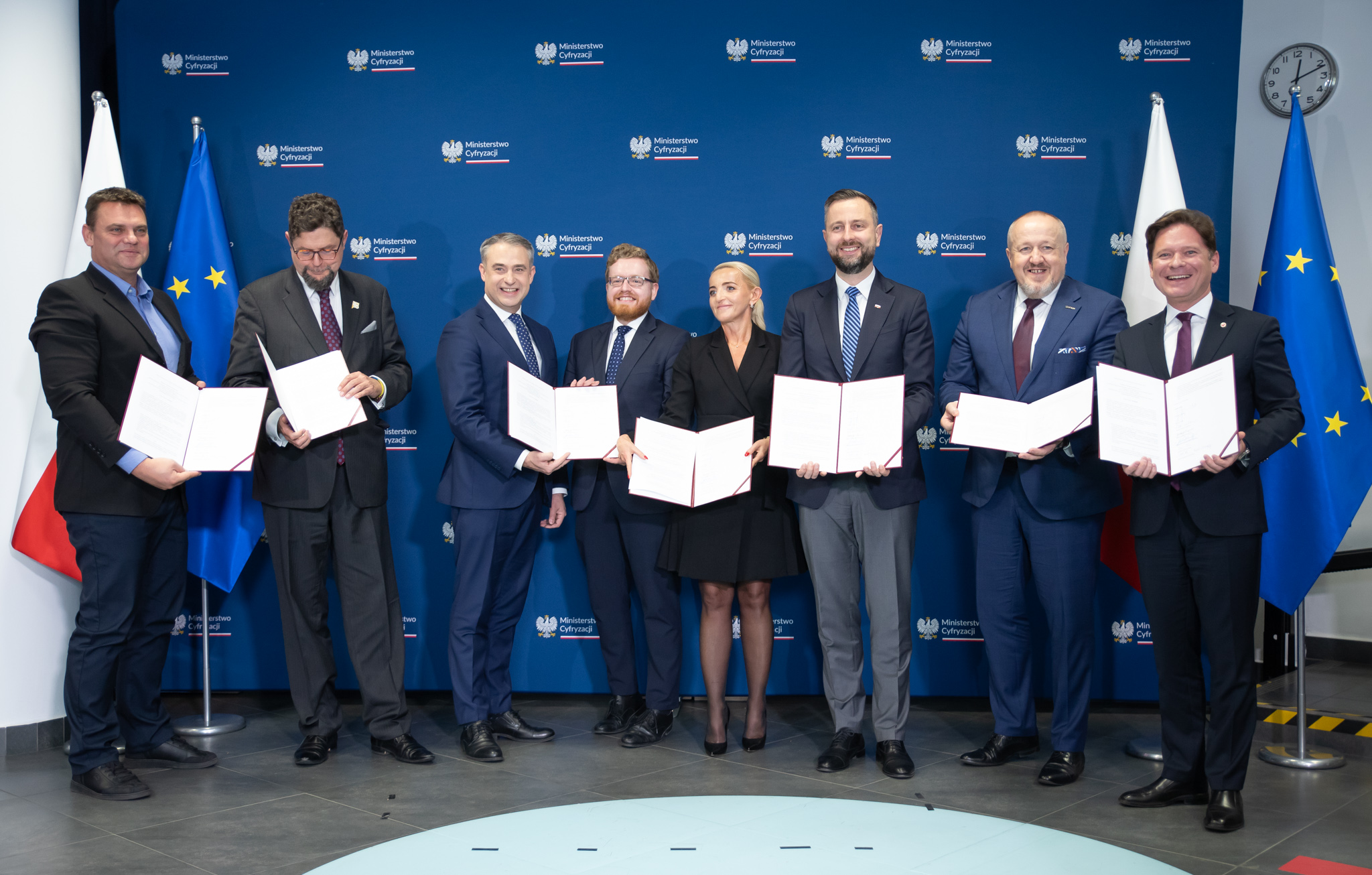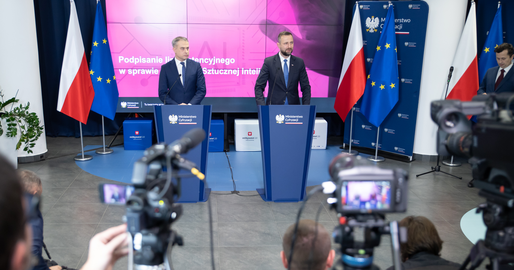 List intencyjny w sprawie powołania Funduszu AI podpisali: Krzysztof Gawkowski, wicepremier i minister cyfryzacji, Władysław Kosiniak-Kamysz, wicepremier i minister obrony narodowej, Dariusz Standerski, sekretarz stanu w ministerstwie cyfryzacji, Andrzej Szeptycki, podsekretarz stanu w Ministerstwie Nauki i Szkolnictwa Wyższego, prof. Jerzy Małachowski, dyrektor NCBR, dr Marcin Liana, zastępca dyrektora Narodowego Centrum Nauki, prof. zw. dr hab. Marta Postuła, pierwsza wiceprezes zarządu Banku Gospodarstwa Krajowego.